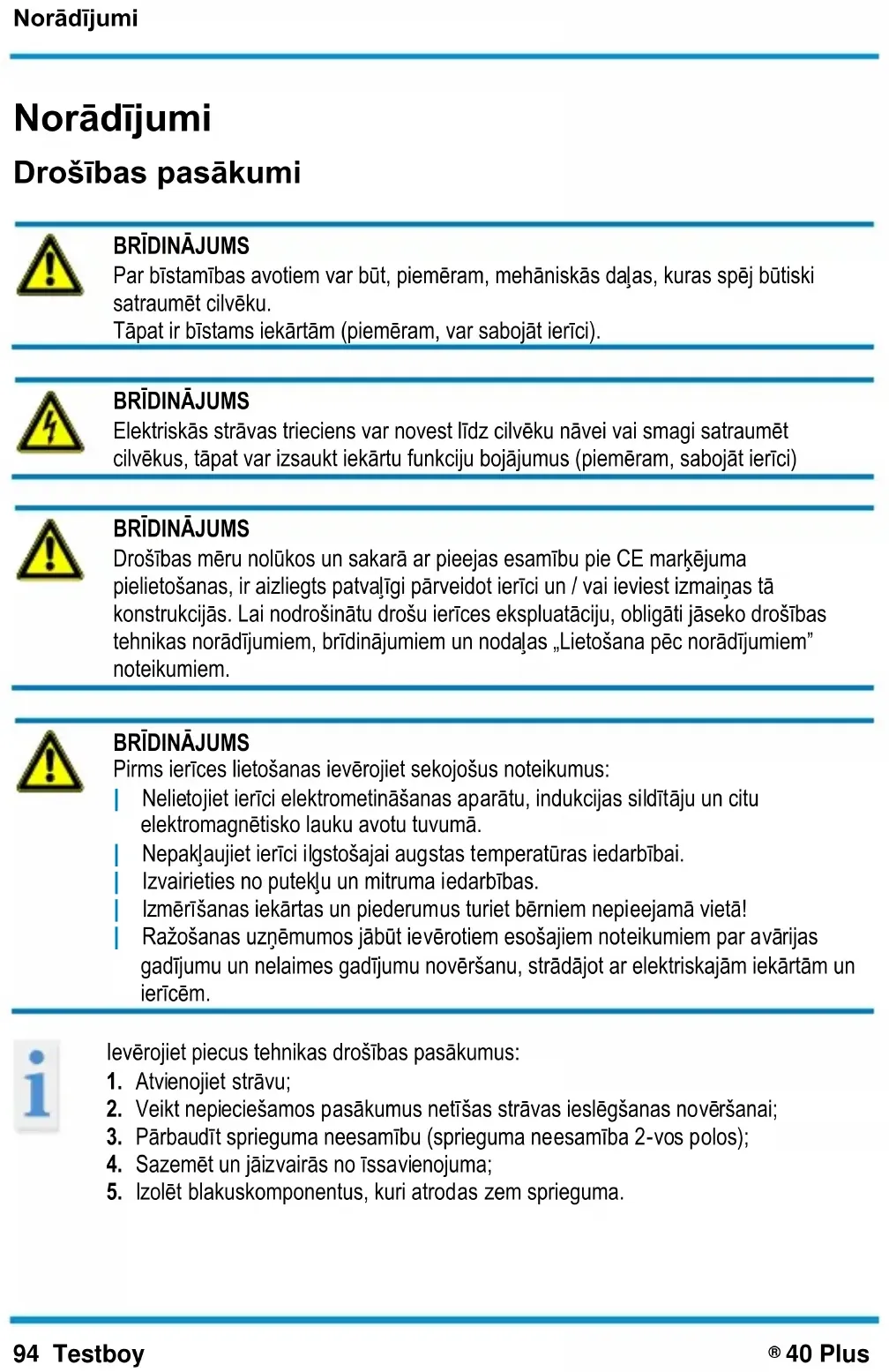 40 Plus - Mērīšanas iekārtas Testboy - Bezmaksas lietošanas instrukcija
