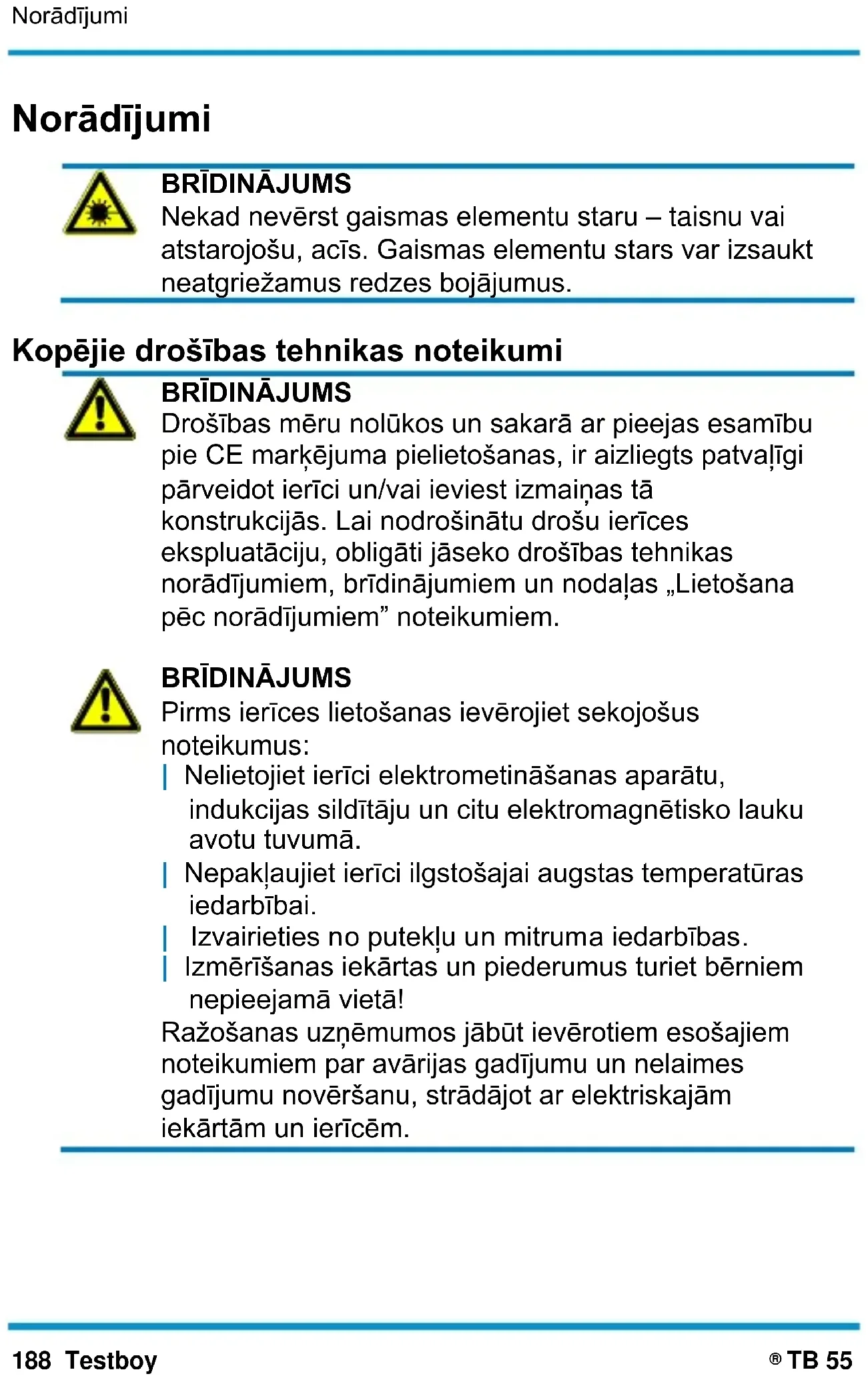 TB 55 Lietošanas pamācība 188Hinweise Testboy