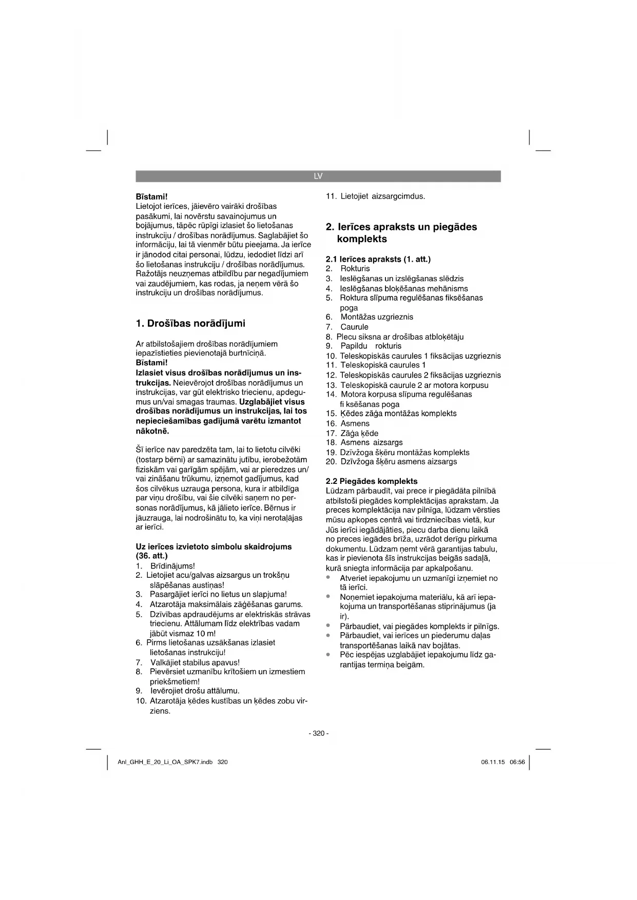 P ēc iespējas uzglabājiet iepakojumu līdz ga- rantijas termiņa beigām. Anl_GHH_E_20_Li_OA_SPK7.indb 320Anl_GHH_E_20_Li_OA_SPK7.indb 320 06.11.15 06:5606.11.15 06:56LV