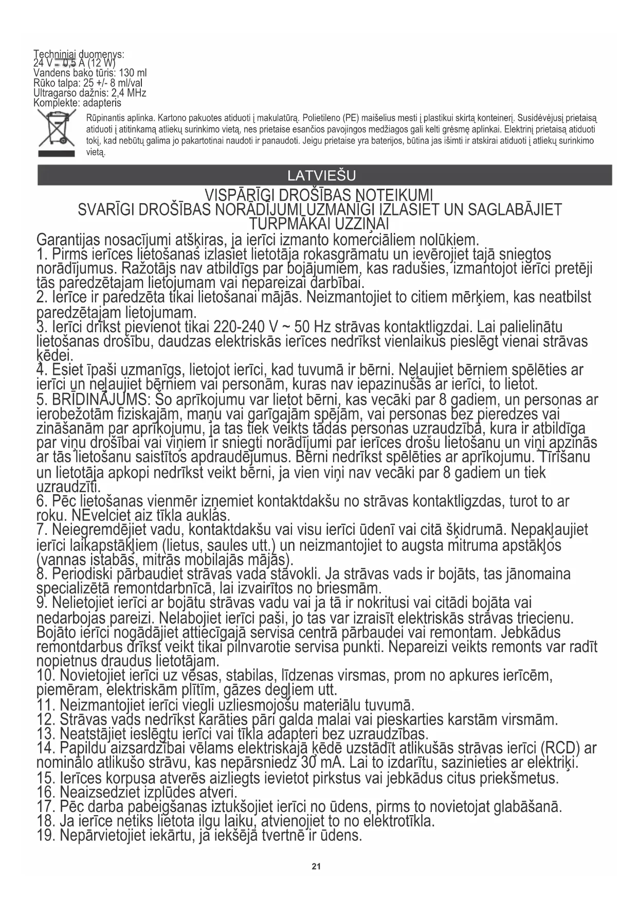 21. Ierīci drīkst lietot tikai ar ieteiktajām smaržvielām. Citu vielu lietošana var izraisīt