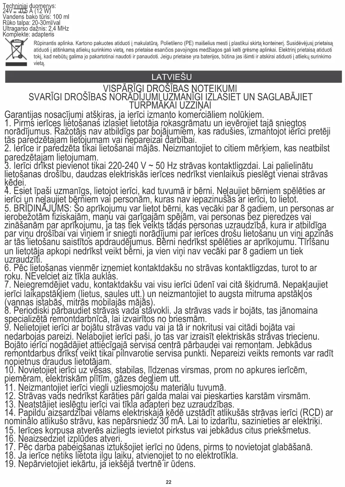 18. Ja ierīce netiks lietota ilgu laiku, atvienojiet to no elektrotīkla.