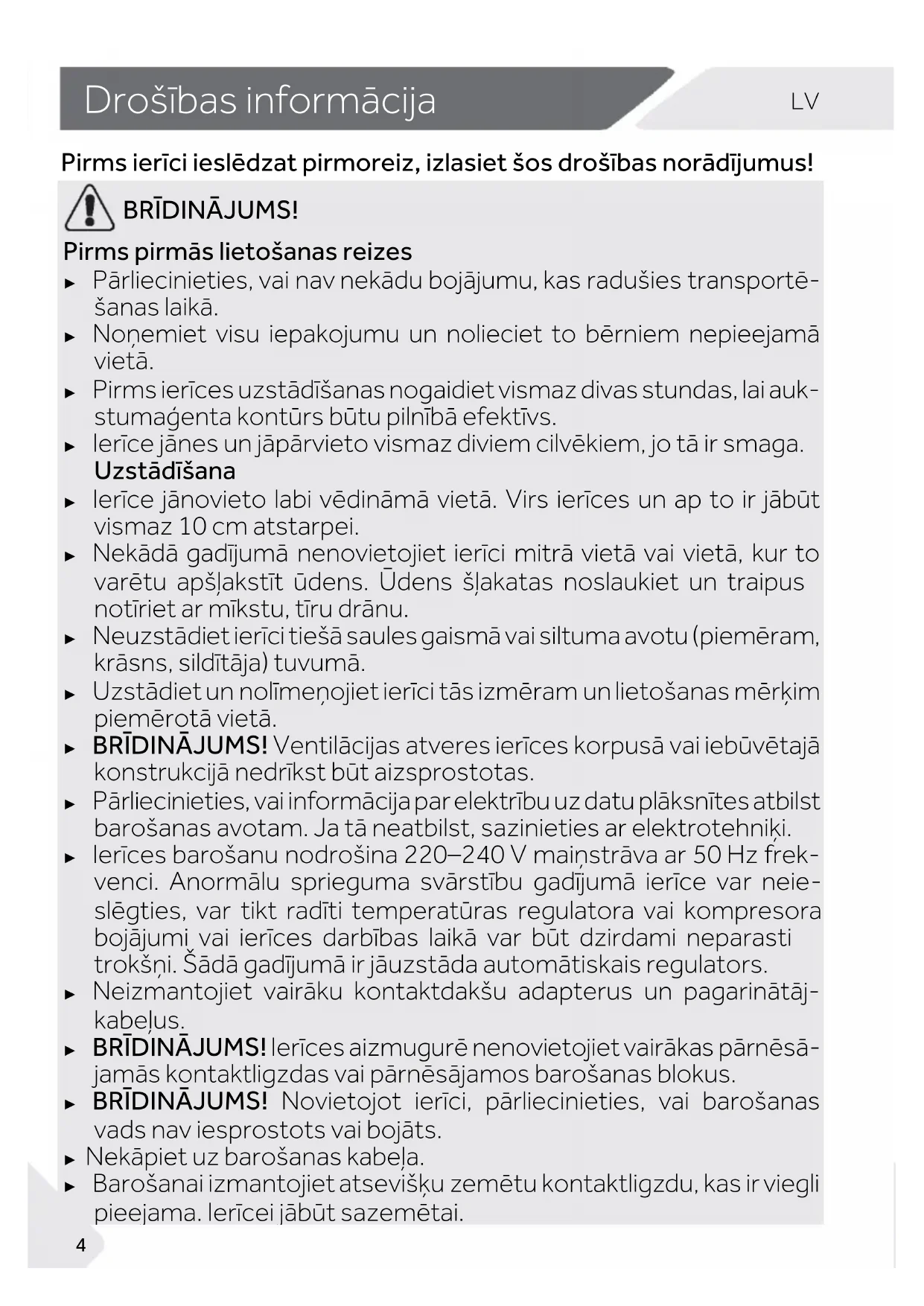 Drošības informācija Pirms ierīci ieslēdzat pirmoreiz, izlasiet šos drošības norādījumus!