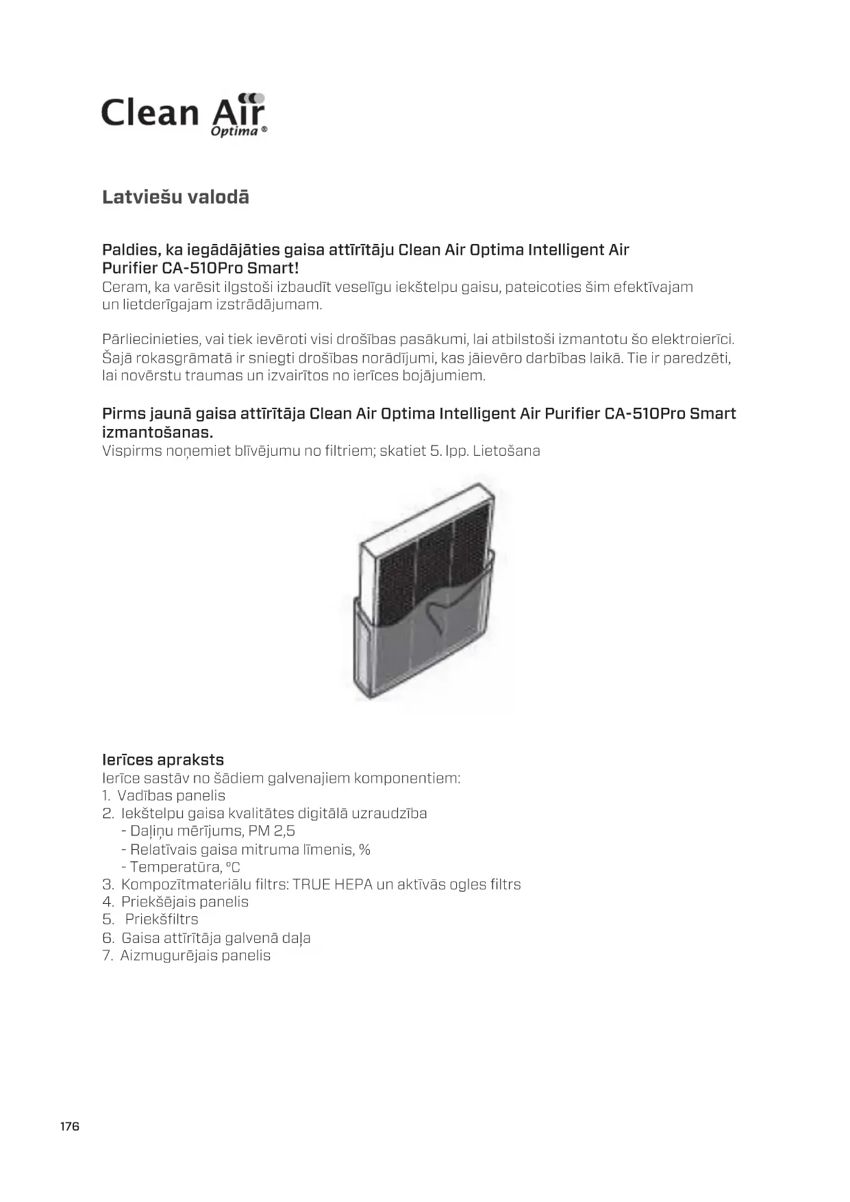 LIETOŠANAS INSTRUKCIJA CA-510Pro Clean Air Optima