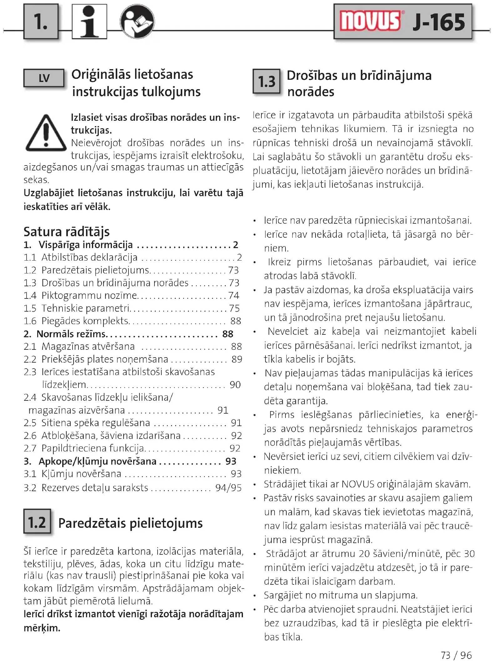 LIETOŠANAS INSTRUKCIJA J-165 Novus