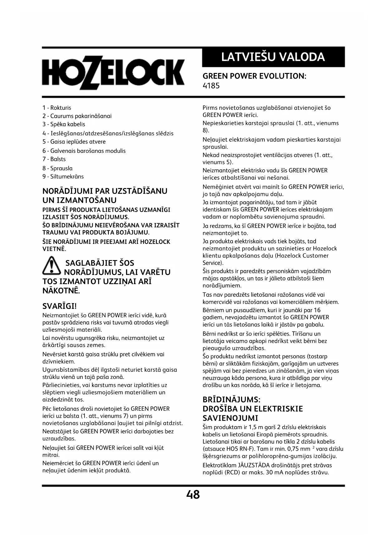 LIETOŠANAS INSTRUKCIJA Green Power Evolution 4185 HOZELOCK