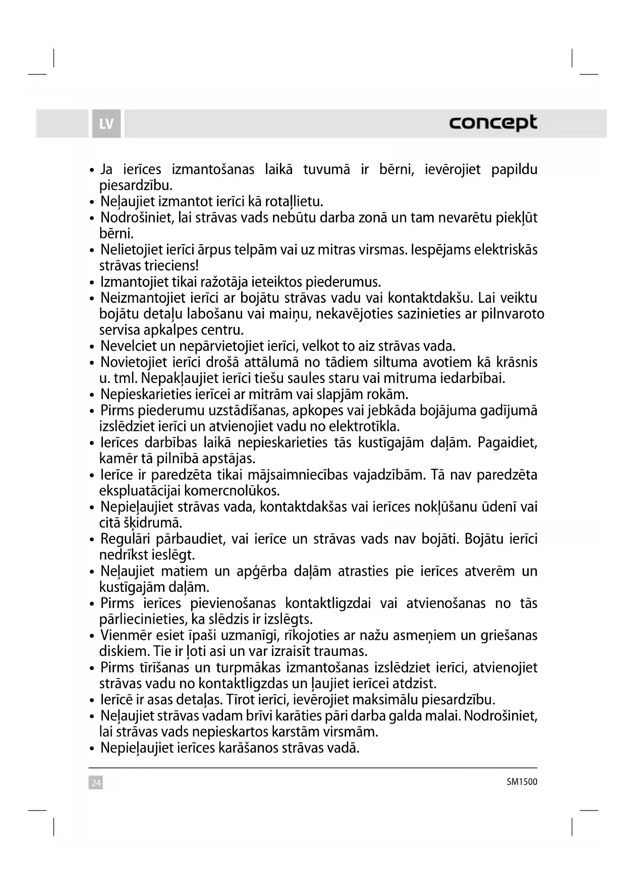 LIETOŠANAS INSTRUKCIJA SM1500 Concept