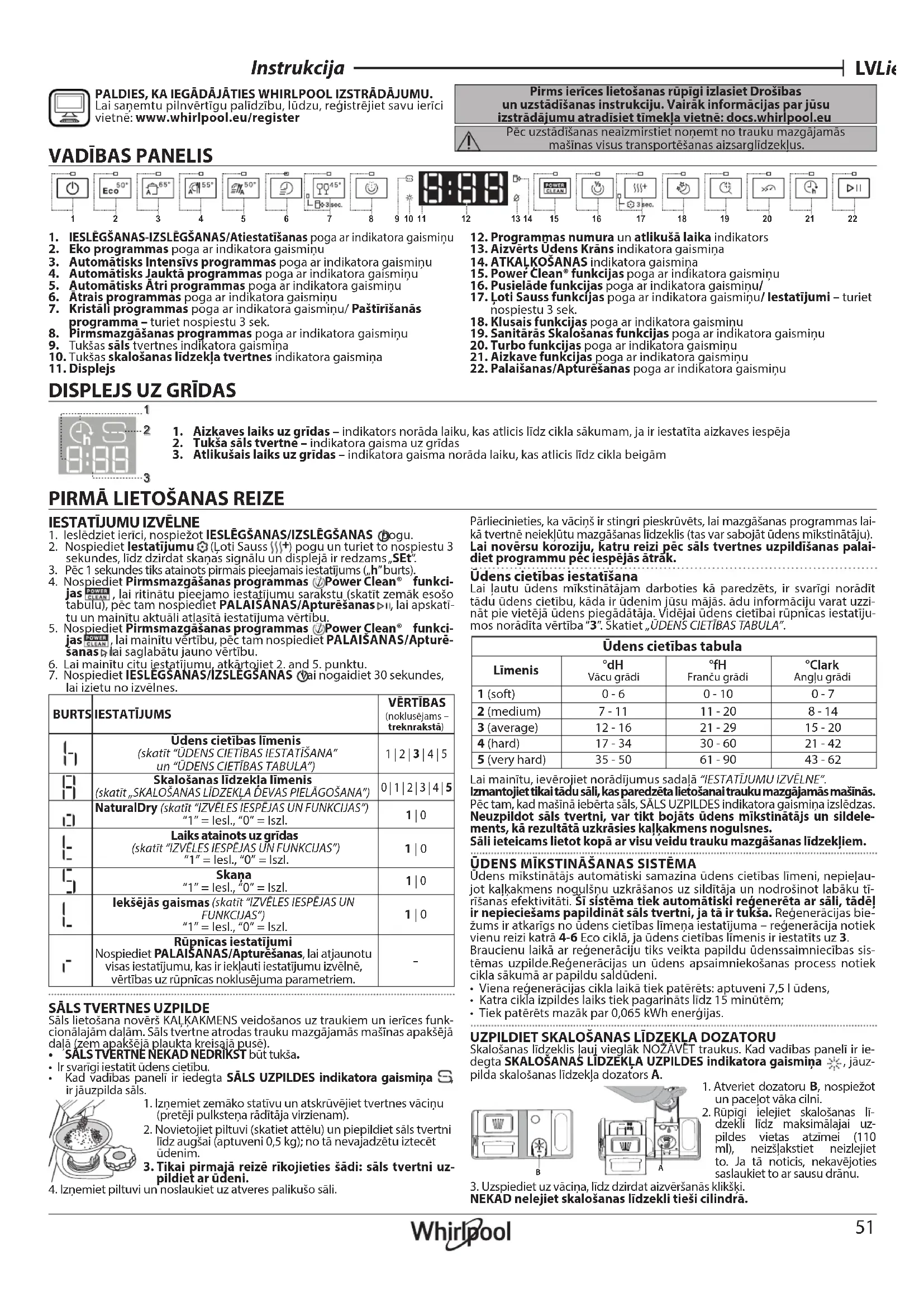 LIETOŠANAS INSTRUKCIJA W7I HF60 TUS WHIRLPOOL