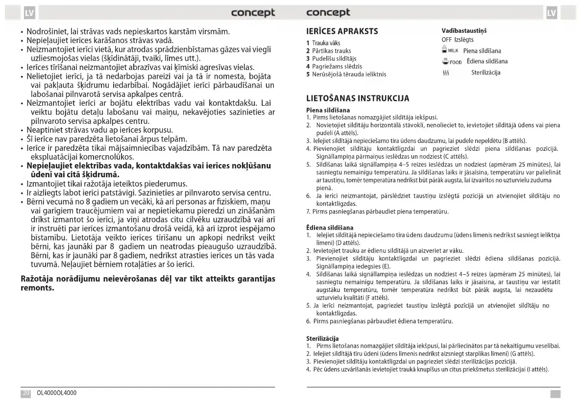 OL4000 - Pudeļu sildītājs Concept - Bezmaksas lietošanas instrukcija