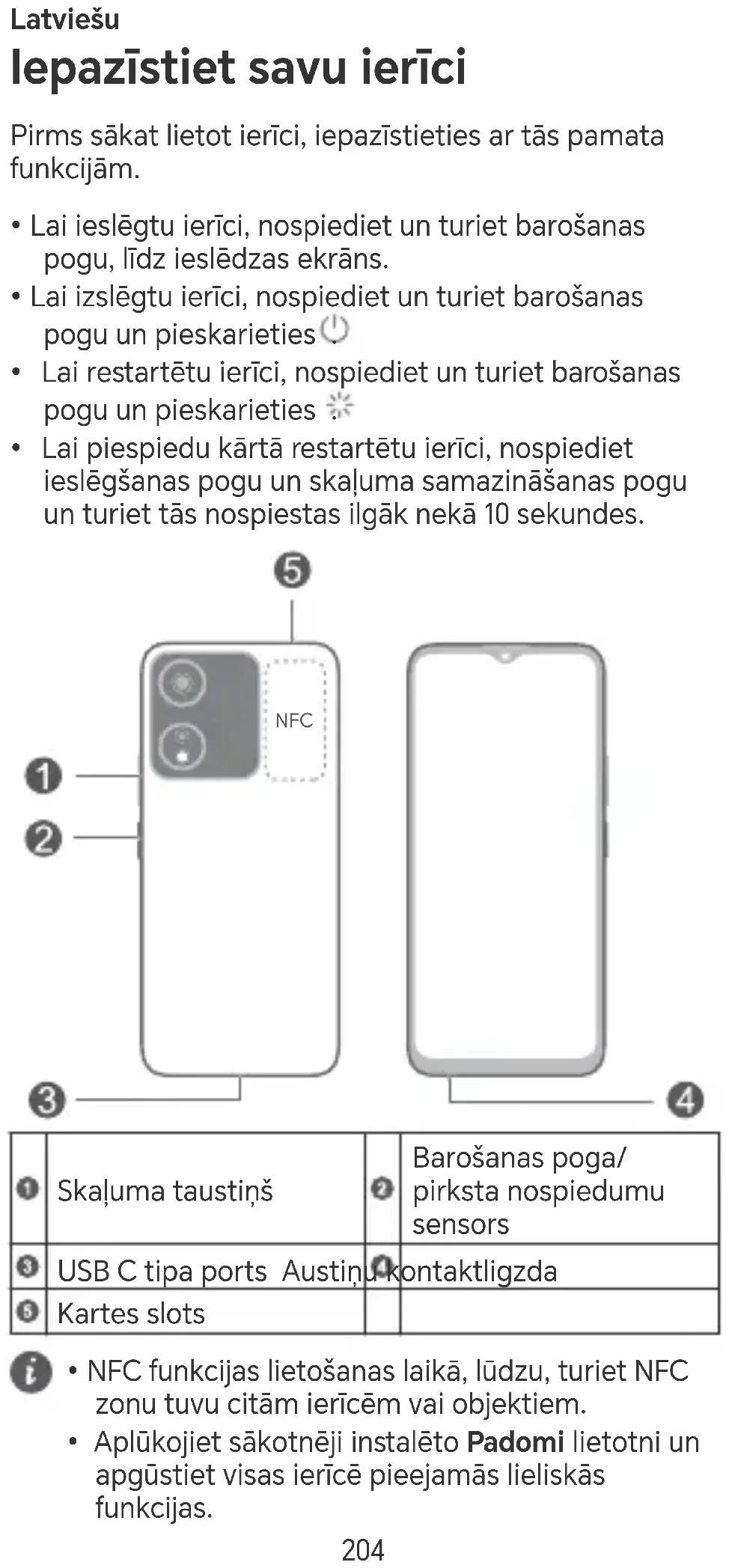 - NFC funkcijas lietošanas laikā, lūdzu, turiet NFC zonu tuvu citām ierīcēm vai objektiem.