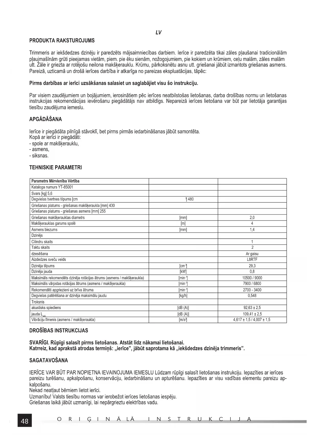 YT-85001 - Zāles trimmeris Yato - Bezmaksas lietošanas instrukcija