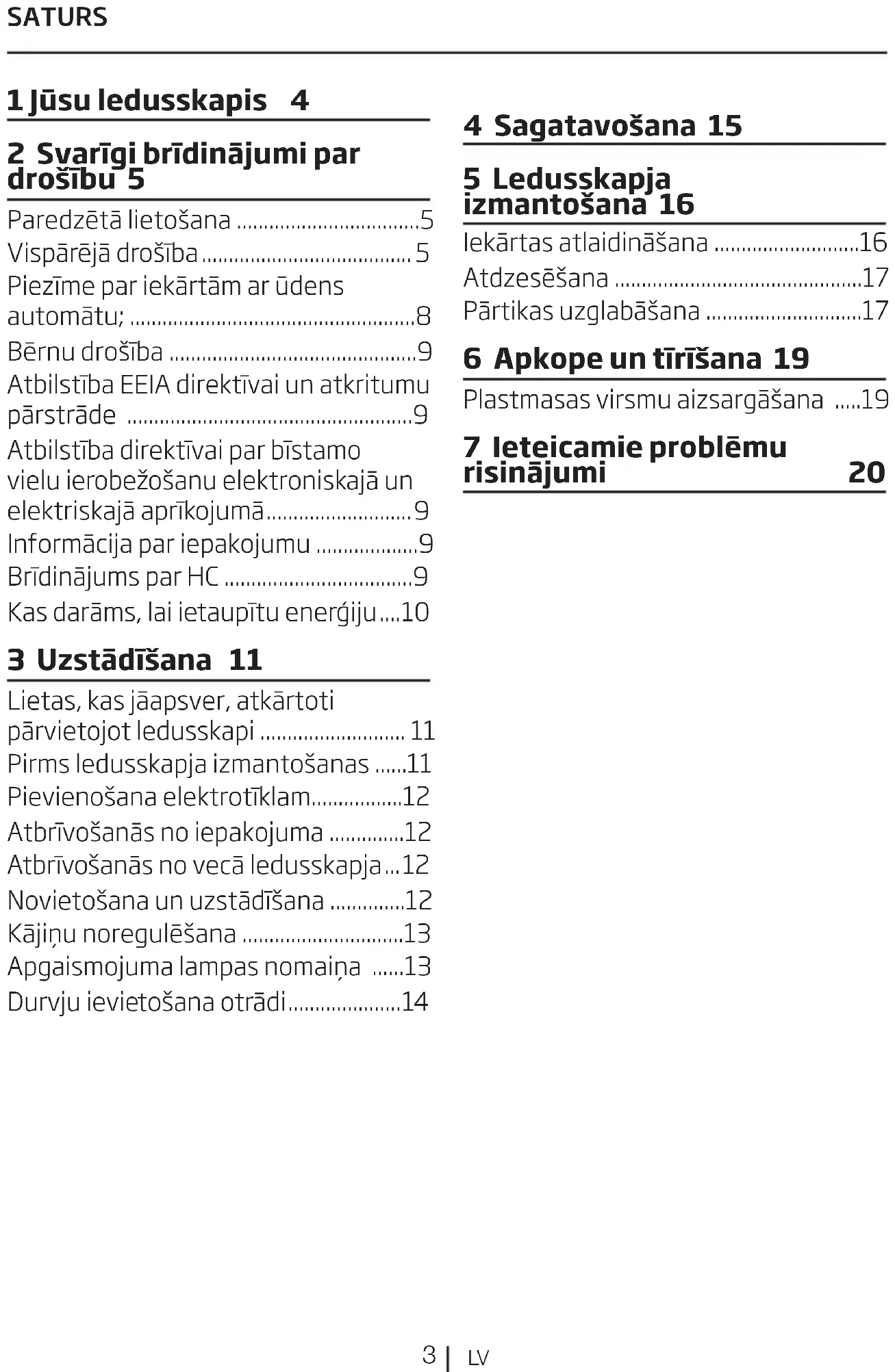 1 Jūsu ledusskapis 4 2 Svarīgi brīdinājumi par drošību 5