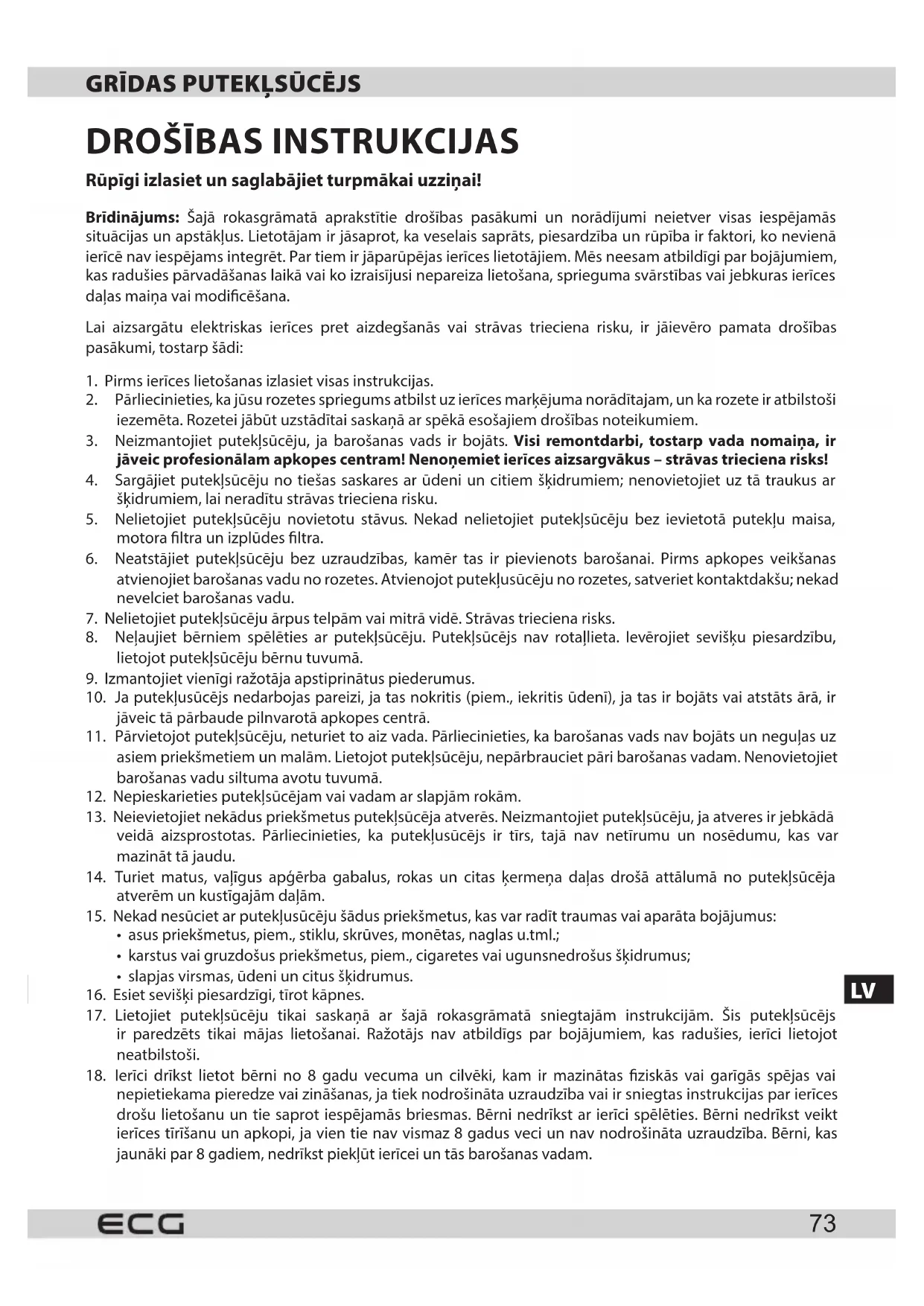 17. Lietojiet putekļsūcēju tikai saskaņā ar šajā rokasgrāmatā sniegtajām instrukcijām. Šis putekļsūcējs