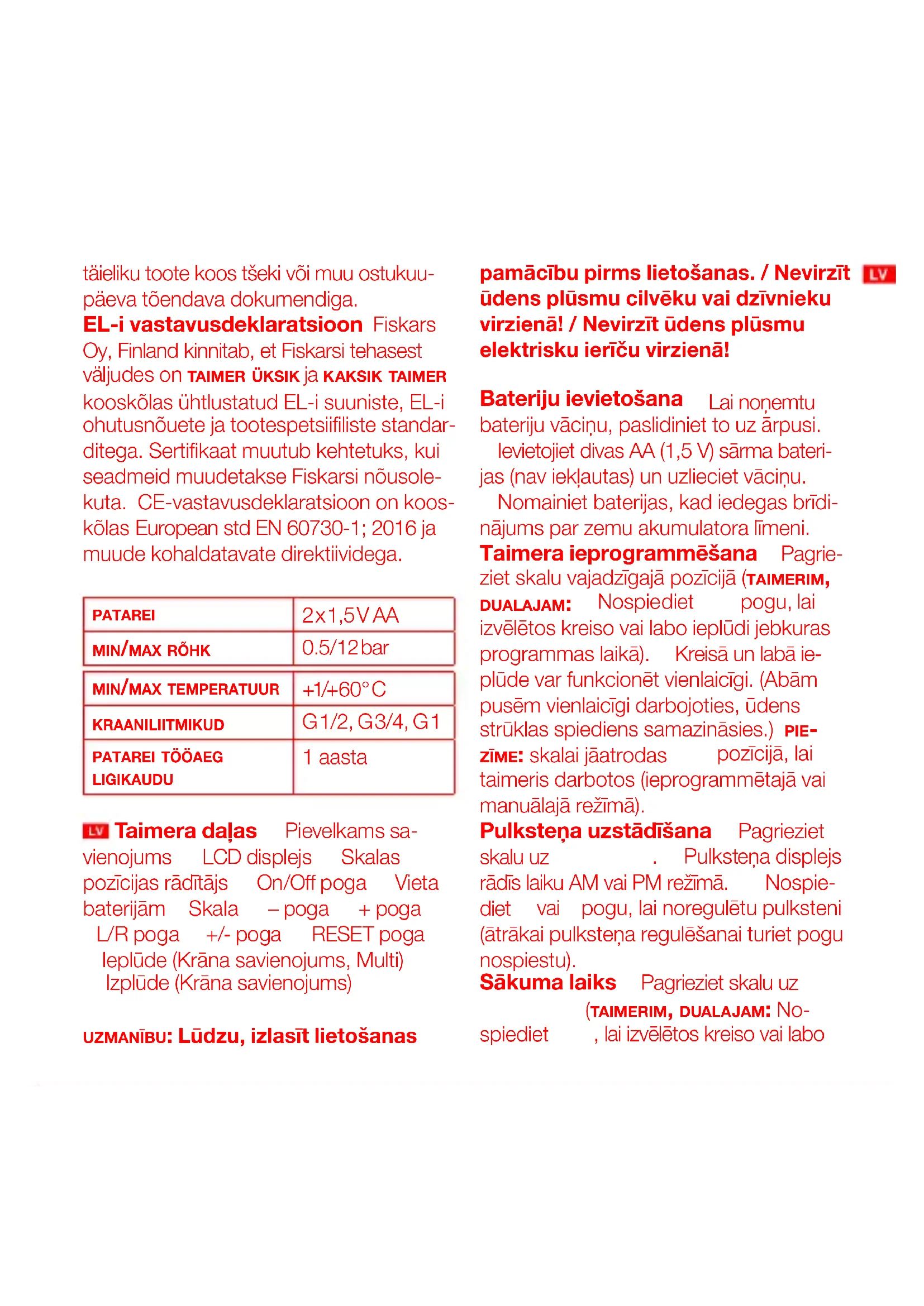 1054791 - Laistīšanas taimeris FISKARS - Bezmaksas lietošanas instrukcija