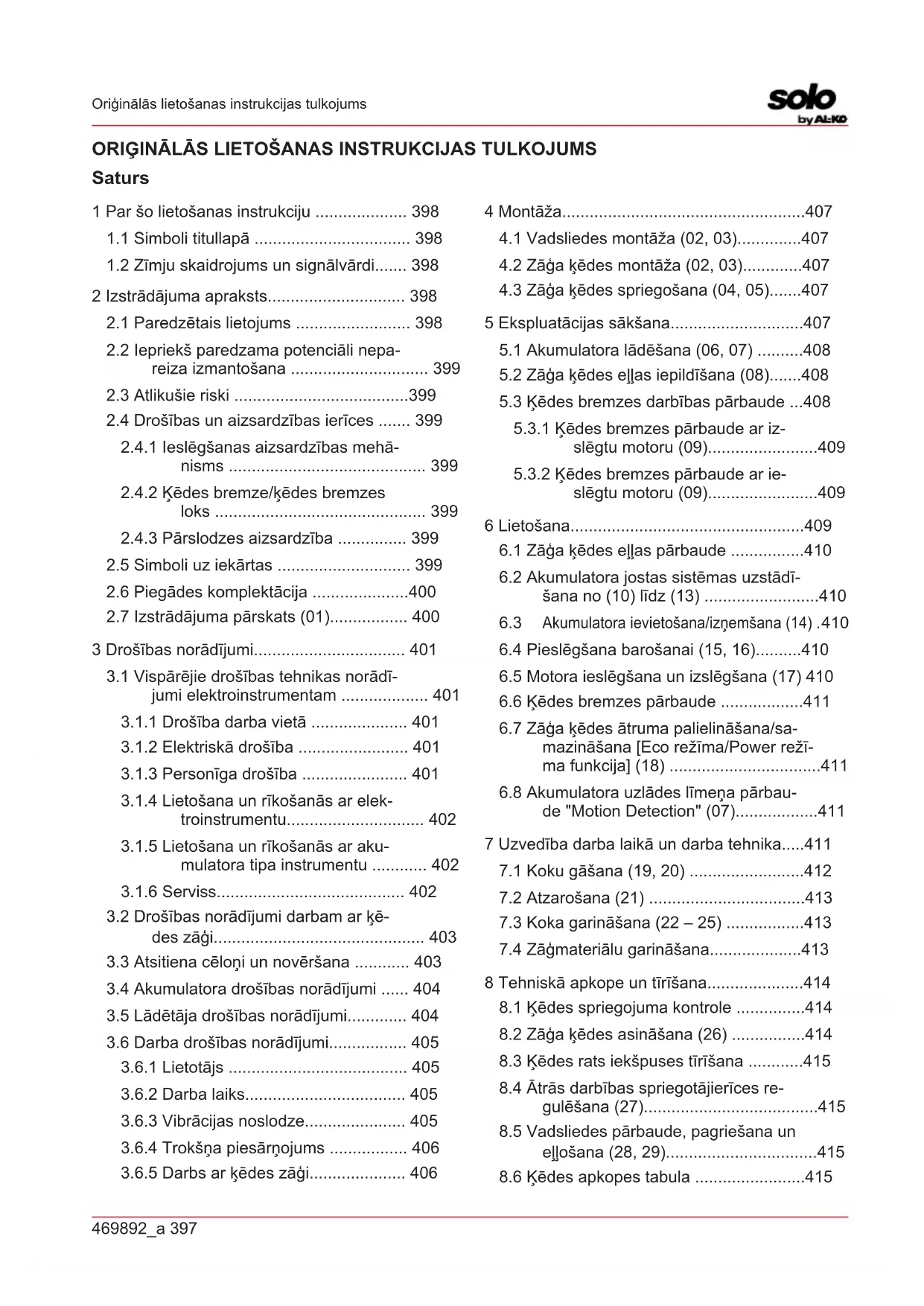 CS 4235 - Zāģis SOLO - Bezmaksas lietošanas instrukcija