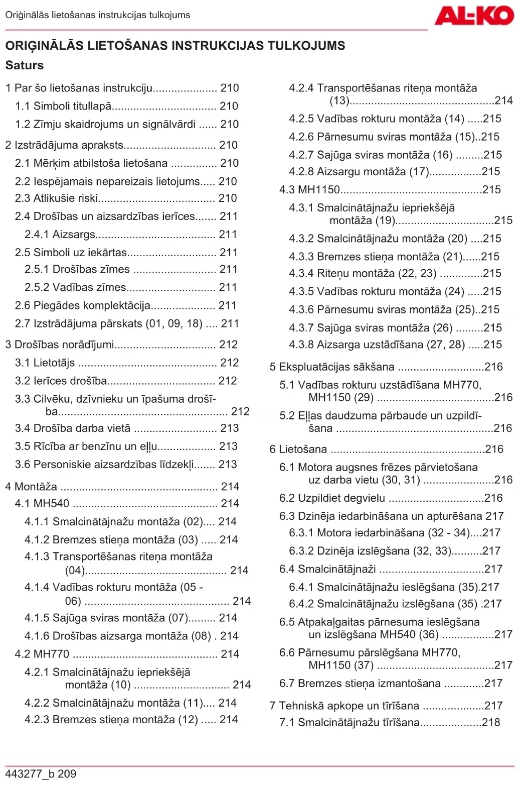 LIETOŠANAS INSTRUKCIJA MH 540 AL-KO