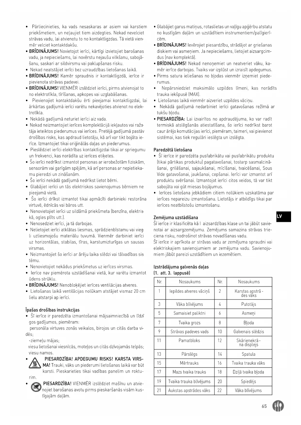 - Šo ierīci drīkst izmantot tikai apmācīti darbinieki restorāna virtuvē, ēdnīcās vai bāros utt.