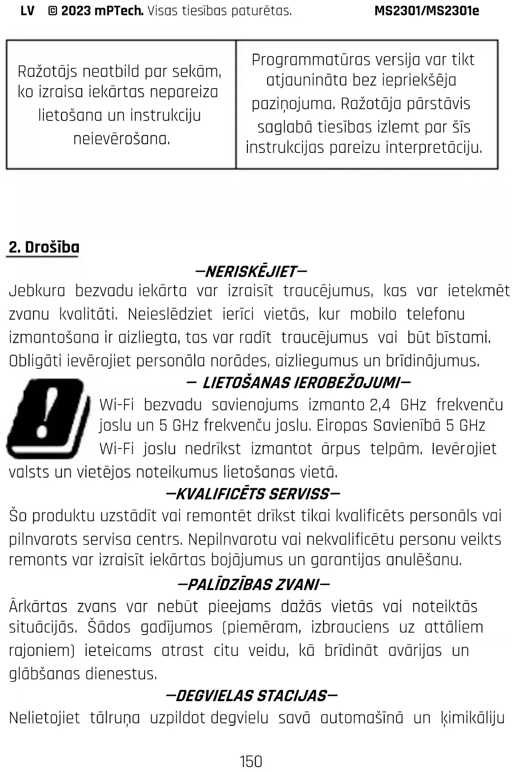 UZMANĪBU ! PaziņojumsLV © 2023 mPTech. Visas tiesības paturētas. MS2301/MS2301e
