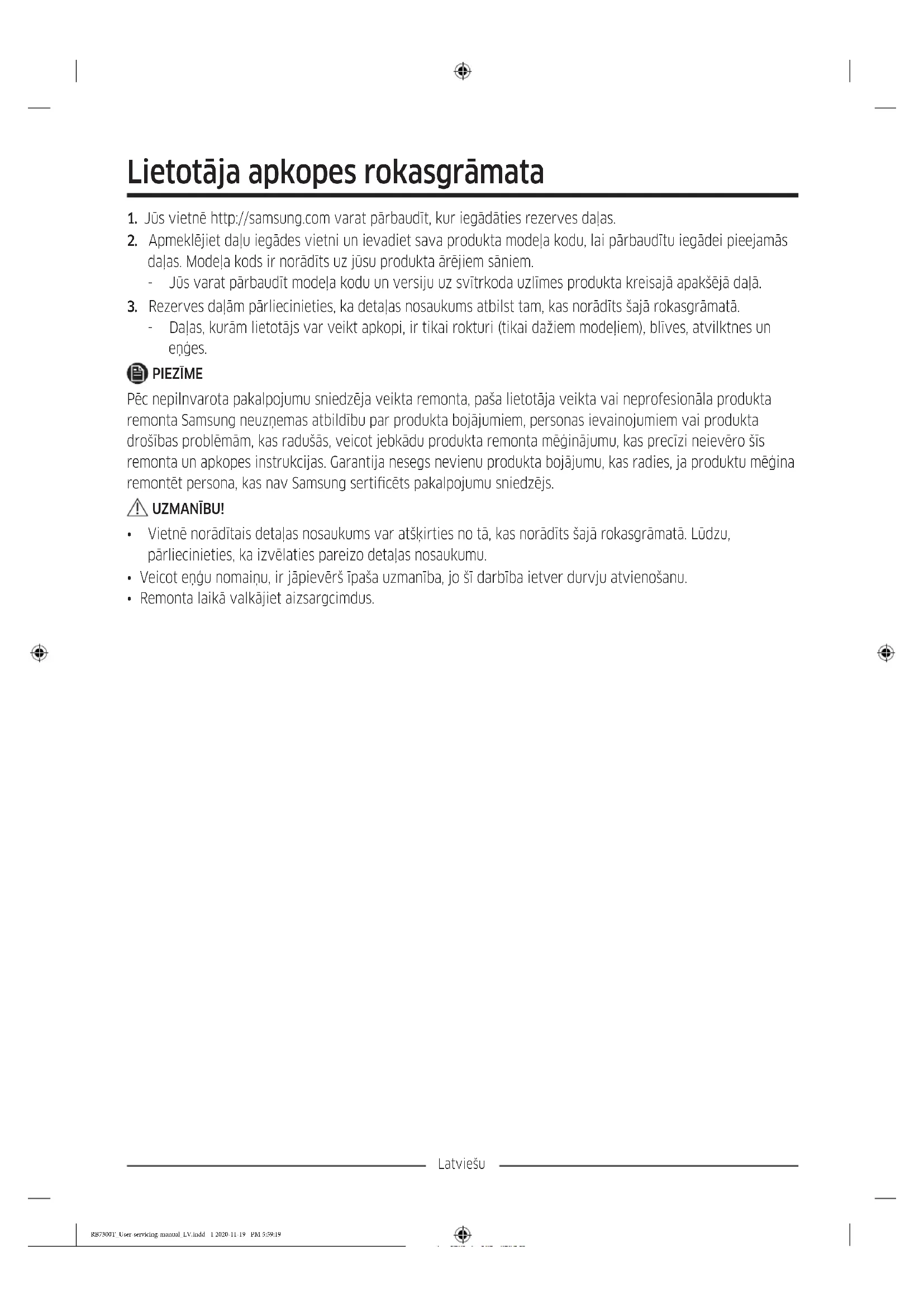 - Šī darbība iespējams neattiecas uz dažiem modeļiem. RB7300T_User-servicing-manual_LV.indd 6 2020-11-19 PM 5:59:27Latviešu