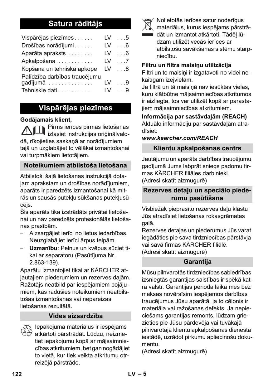Téléchargez la notice de votre Ūdens un putekļu putekļsūcējs au format PDF gratuitement ! Retrouvez votre notice WD 3300 M - KARCHER et reprennez votre appareil électronique en main. Sur cette page sont publiés tous les documents nécessaires à l'utilisation de votre appareil WD 3300 M de la marque KARCHER.