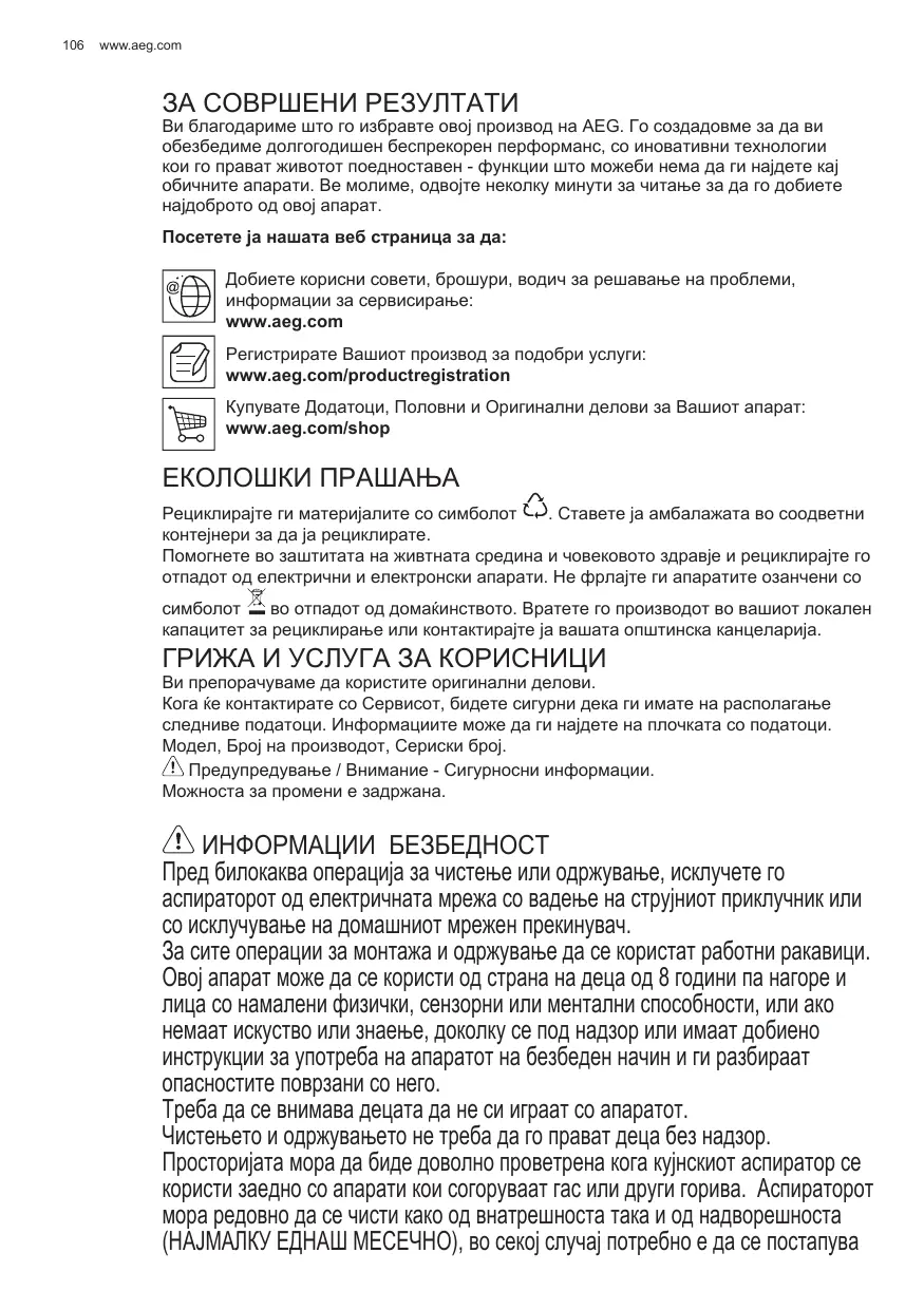 Enregistrer votre produit pour obtenir un meilleur service : www.aeg.com/productregistration Acheter des accessoires, consommables et pièces de rechange d’origine pour votre appareil : www.aeg.com/shop