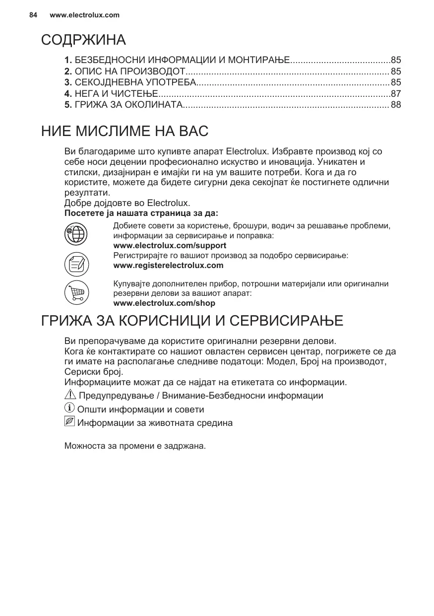 Avant de contacter notre centre de service agréé, assurez-vous de disposer des informations suivantes : Modèle, PNC, numéro de série. Ces informations figurent sur la plaque signalétique. Avertissement/Consignes de sécurité Informations générales et conseils Informations environnementales Sous réserve de modifications.