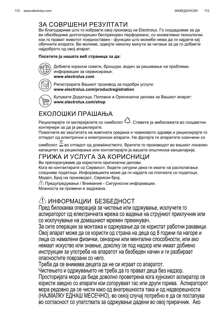 Enregistrer votre produit pour obtenir un meilleur service : www.electrolux.com/productregistration Acheter des accessoires, consommables et pièces de rechange d’origine pour votre appareil : www.electrolux.com/shop