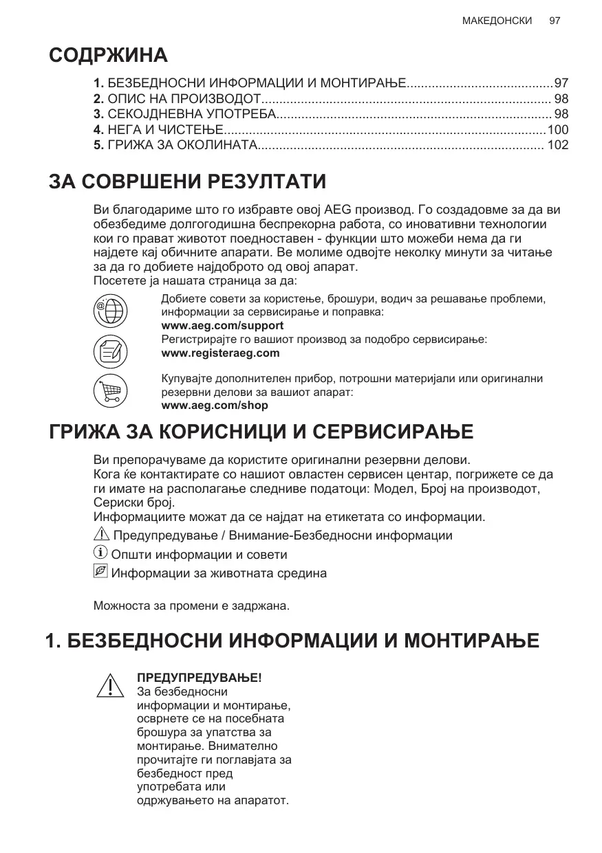 Enregistrer votre produit pour un meilleur service : www.registeraeg.com Acheter des accessoires, consommables et pièces de rechange d’origine pour votre appareil : www.aeg.com/shop