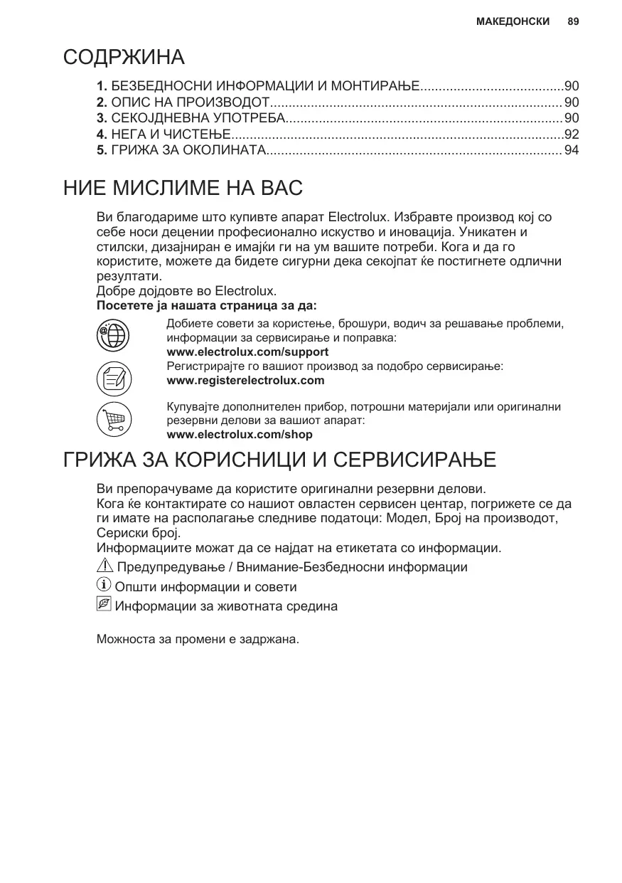 Avant de contacter notre centre de service agréé, assurez-vous de disposer des informations suivantes : Modèle, PNC, numéro de série. Ces informations figurent sur la plaque signalétique. Avertissement/Consignes de sécurité Informations générales et conseils Informations environnementales Sous réserve de modifications.
