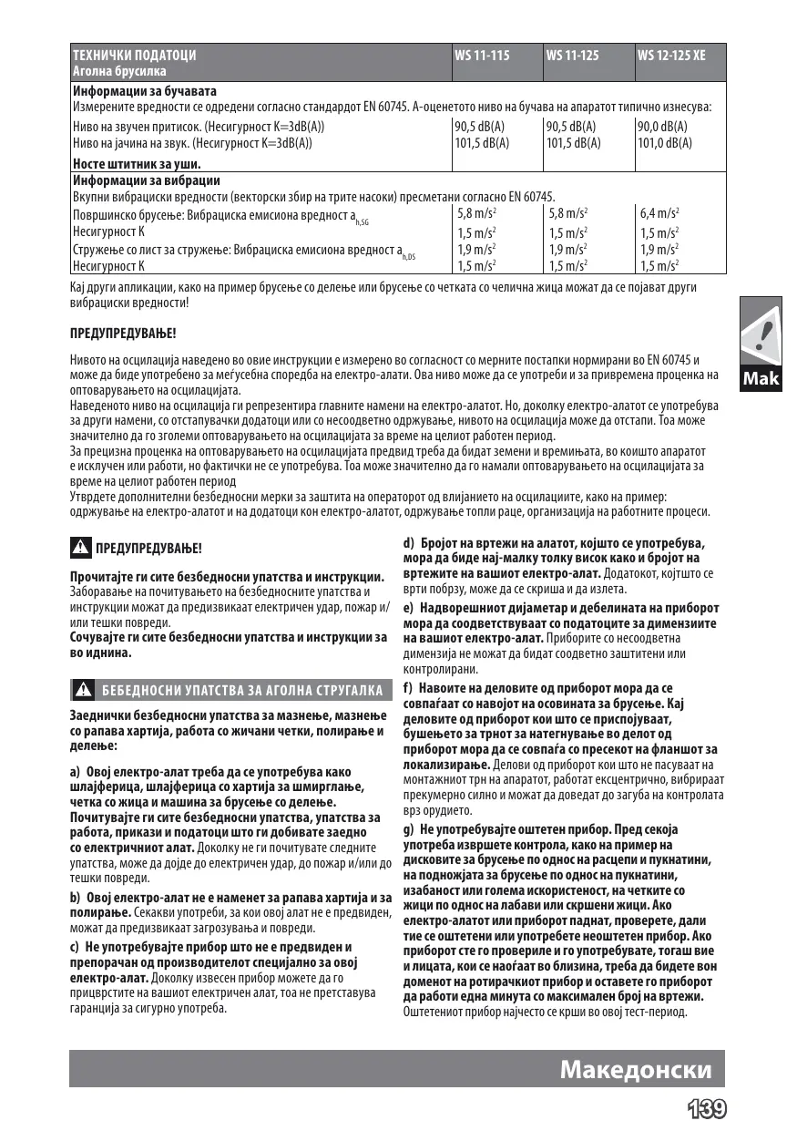 MODE D'EMPLOI WS 9-100, WS 9-115, WS 9-125, WS 11-115, WS 11-125, WS 12-125 XE AEG
