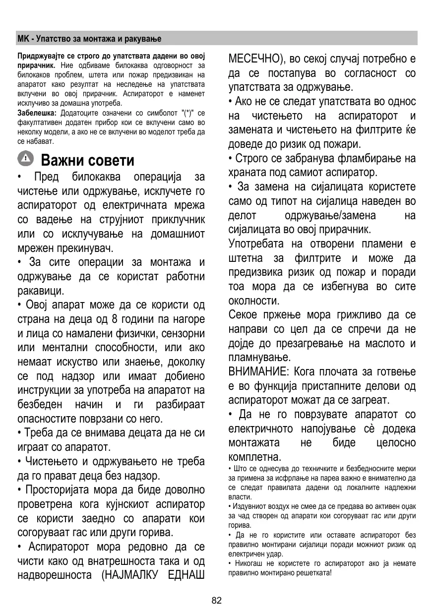 + La hotte doit être régulièrement nettoyée à la fois à l'intérieur et à l'extérieur (AU MOINS UNE FOIS PAR MOIS), cela devrait se faire en