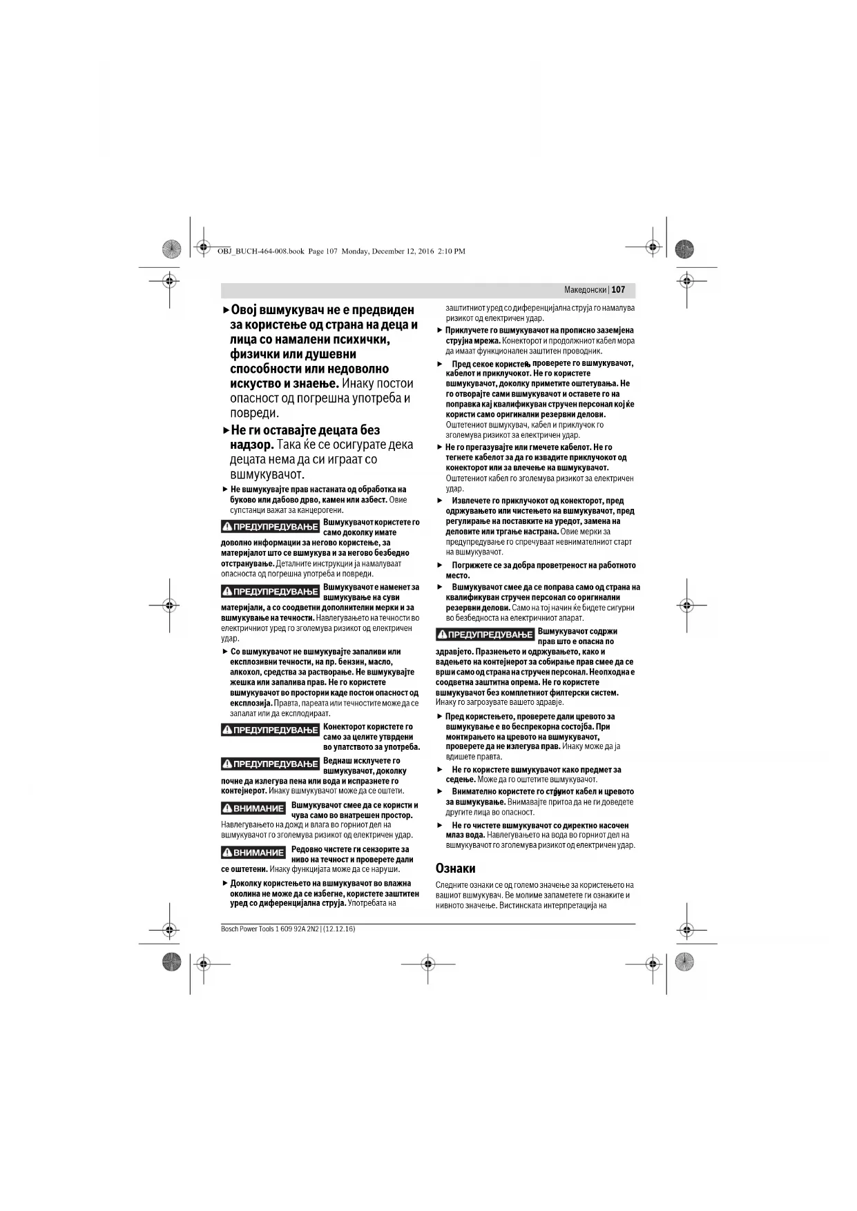 OBJ_BUCH-464-008.book Page 106 Monday, December 12, 2016 2:10 PMМакедонски | 107 Bosch Power Tools 1 609 92A 2N2 | (12.12.16) Овој вшмукувач не е предвиден