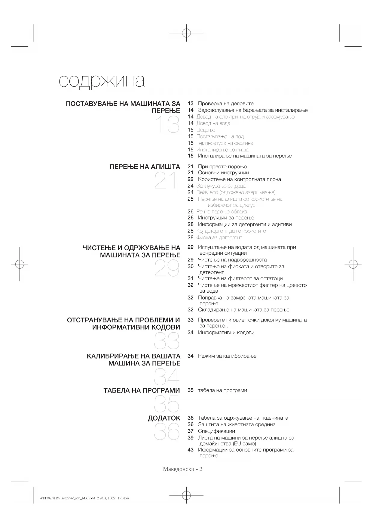 Ова упатство е направено од 100% рециклирана хартија. WF1702NHWG-02796Q-03_MK.indd 1 2014/11/27 15:01:47Македонски - 2