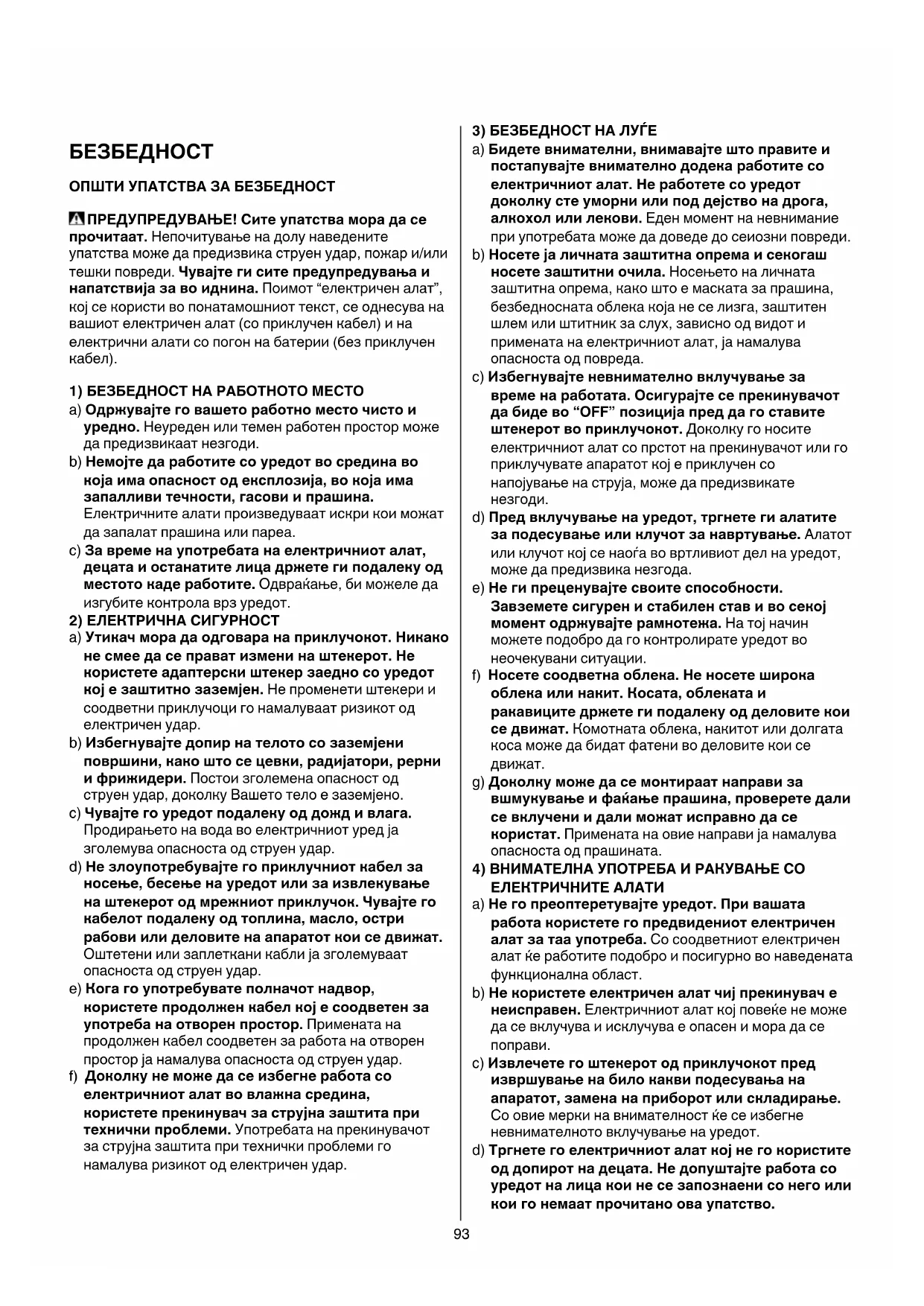 • Алатот и кабелот секогаш да се одржуваат чисти