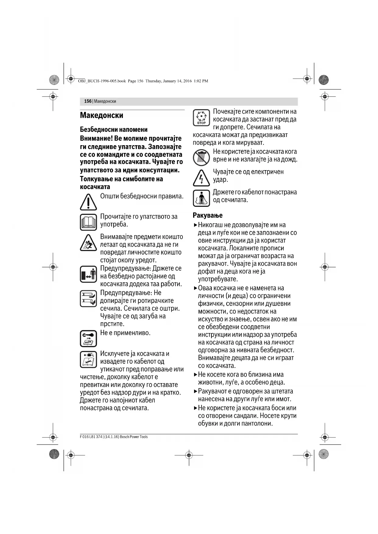 OBJ_BUCH-1996-005.book Page 155 Thursday, January 14, 2016 1:02 PM156 | Македонски F 016 L81 374 | (14.1.16) Bosch Power Tools Македонски