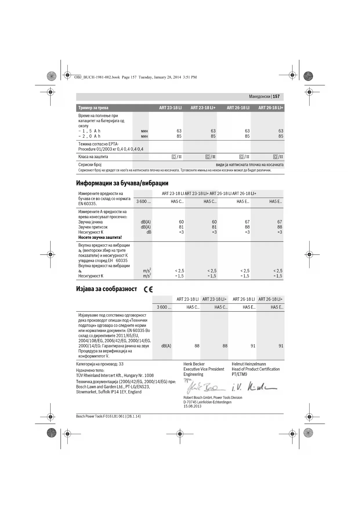 Пронајдете бесплатно прирачникот за уредот ART 2318 LI BOSCH во PDF формат.