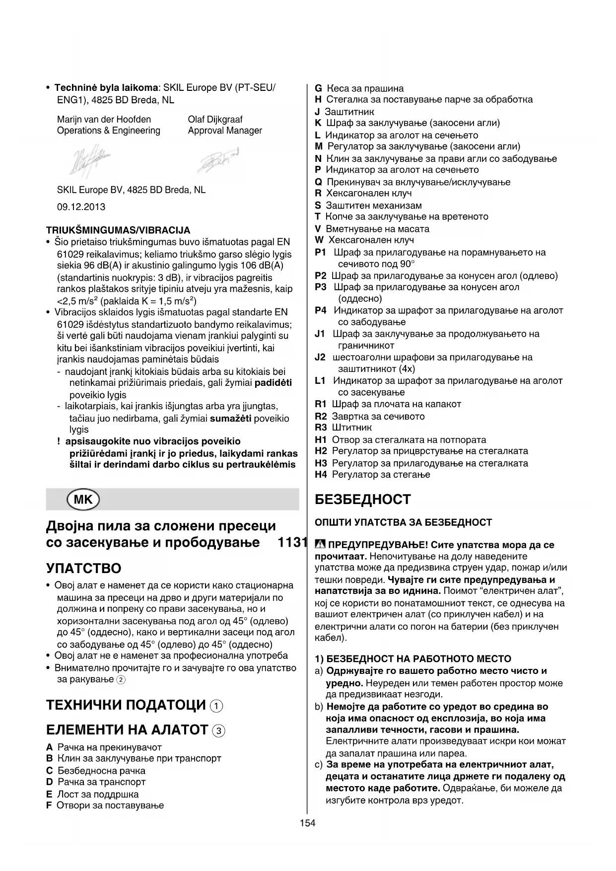 стандардизација: EN 61029, EN 61000, EN 55014 во