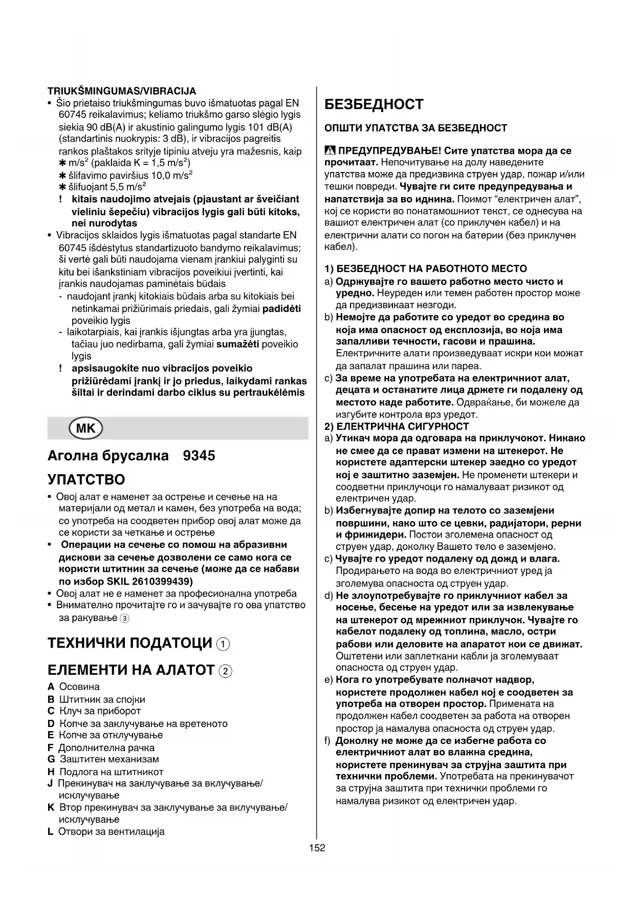 КОРИСНИЧКИ ПРИРАЧНИК 9345 AG SKIL