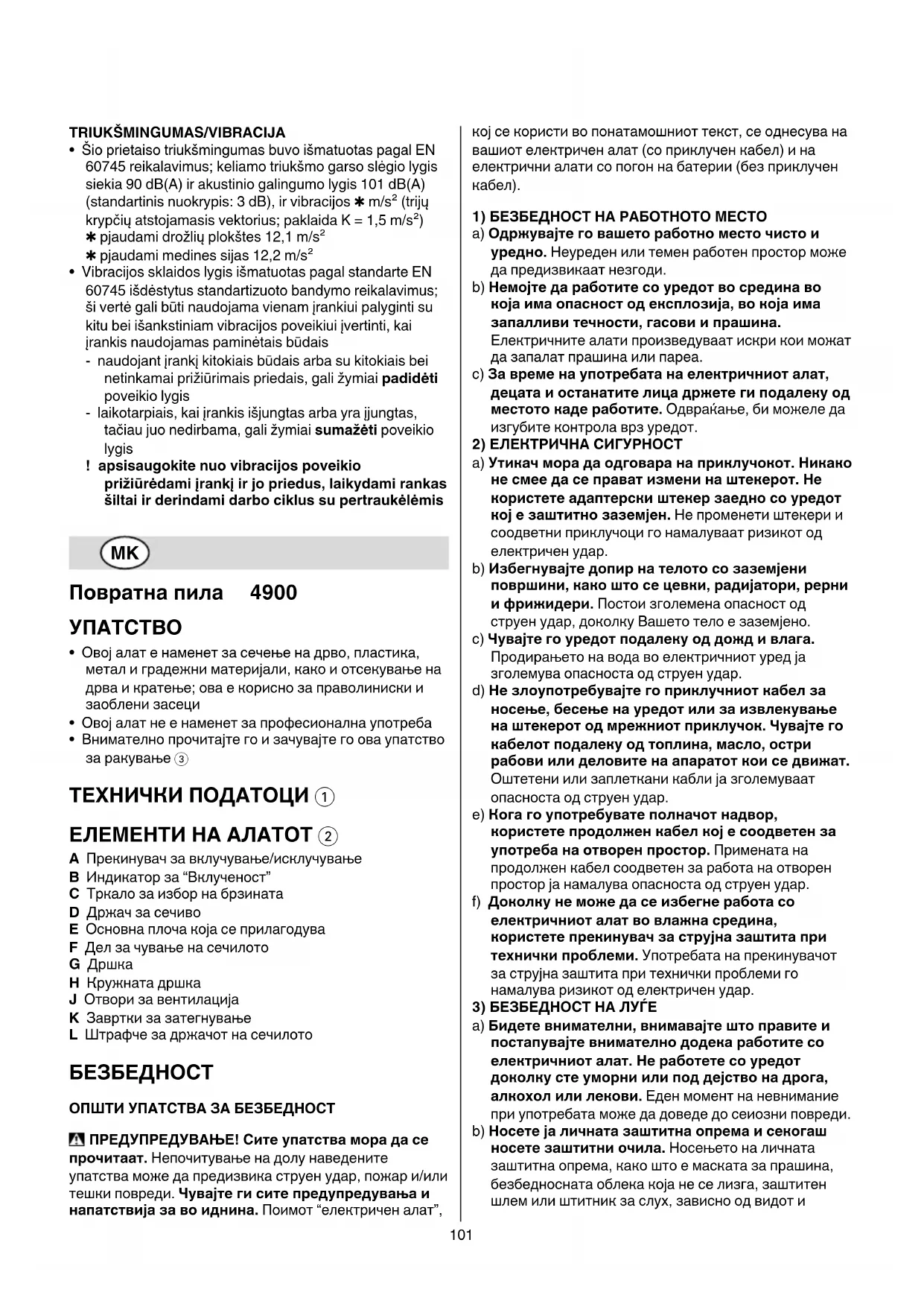 • Мерено во согласност со EN 60745 нивото на звучен