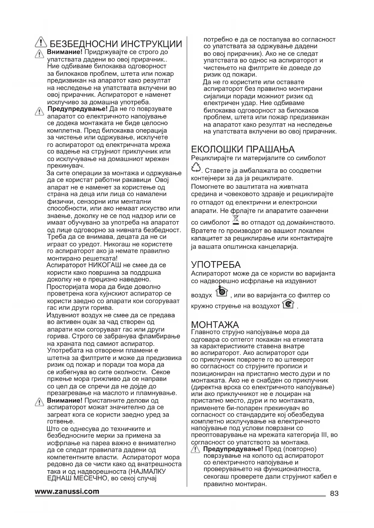 Téléchargez la notice de votre кујнска аспиратор au format PDF gratuitement ! Retrouvez votre notice ZHC 7131 X - ZANUSSI et reprennez votre appareil électronique en main. Sur cette page sont publiés tous les documents nécessaires à l'utilisation de votre appareil ZHC 7131 X de la marque ZANUSSI.