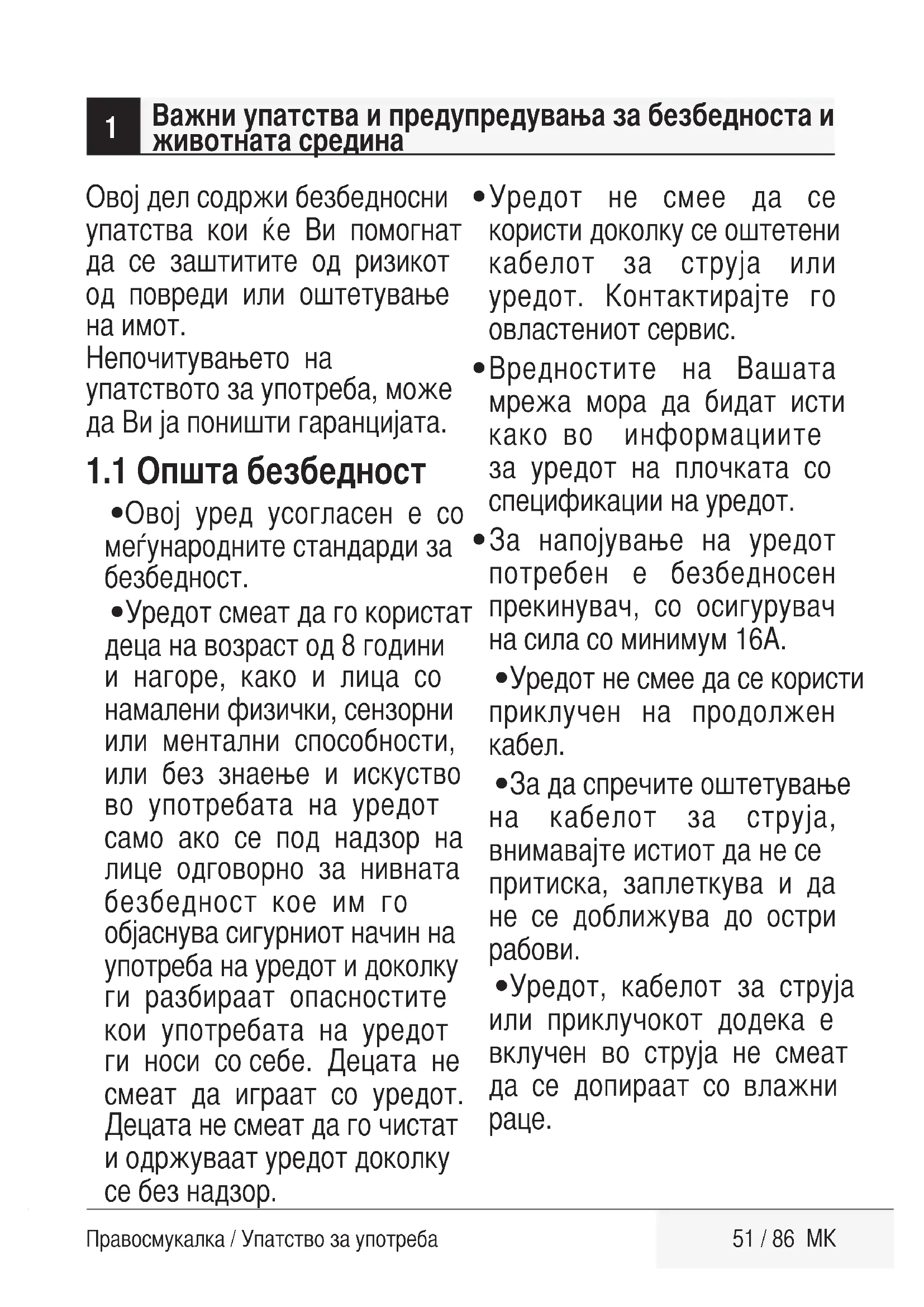 1.1 Општа безбедност . . . . . . . . . . . . . . . . 51