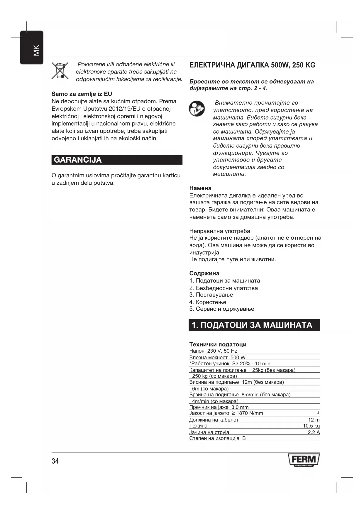 LHM1011 - Електрична витла Ferm - Бесплатен кориснички прирачник