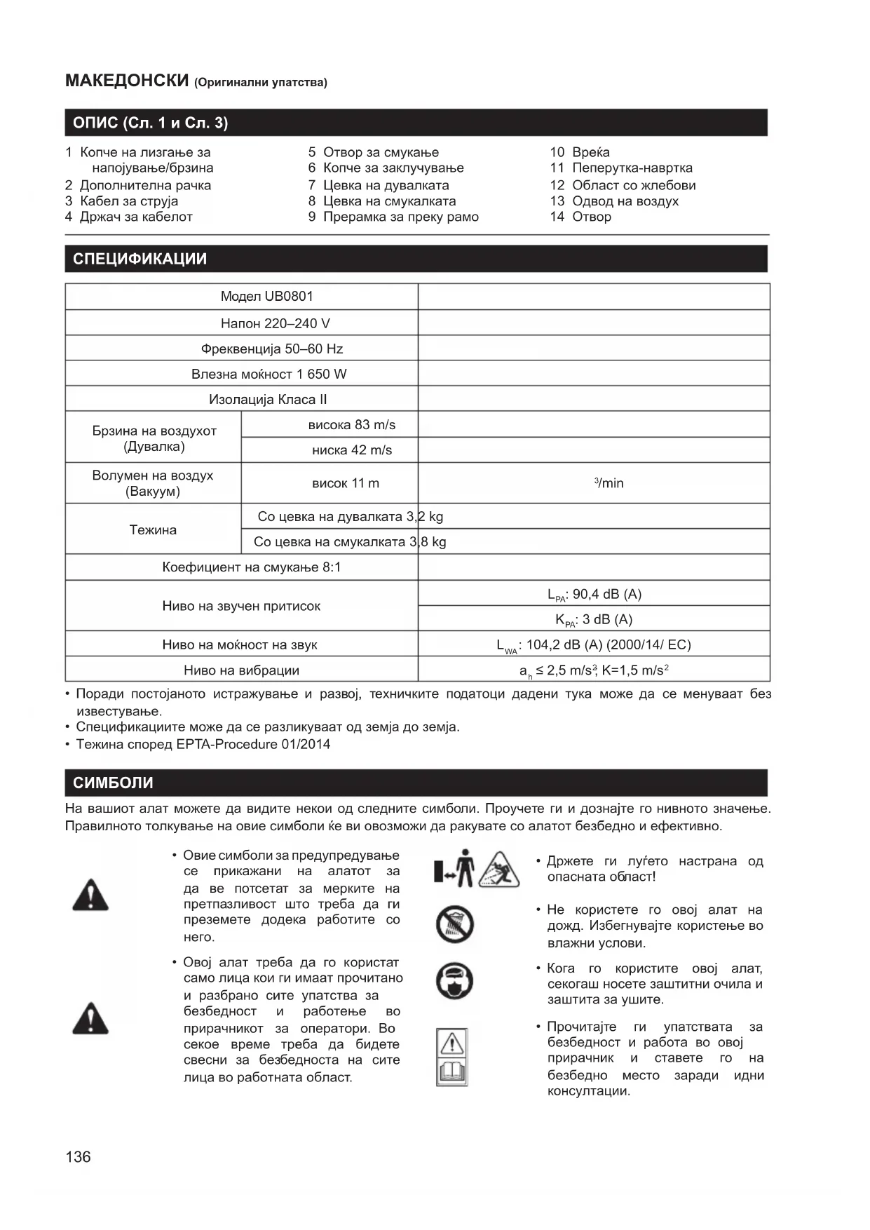 UB0801V - дувач за лисја MAKITA - Бесплатен кориснички прирачник