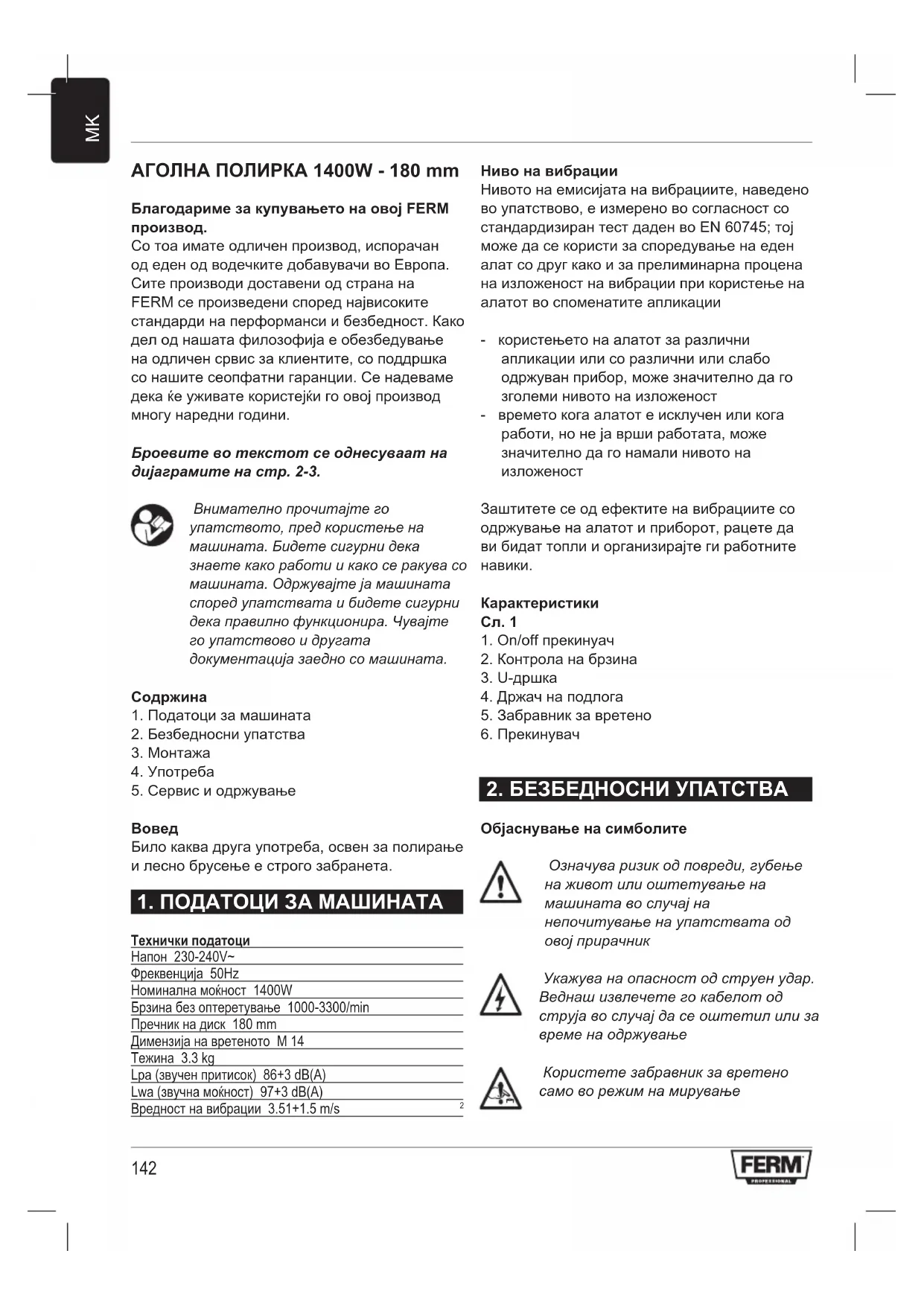 AGM1084P - Електрична полирачка Ferm - Бесплатен кориснички прирачник