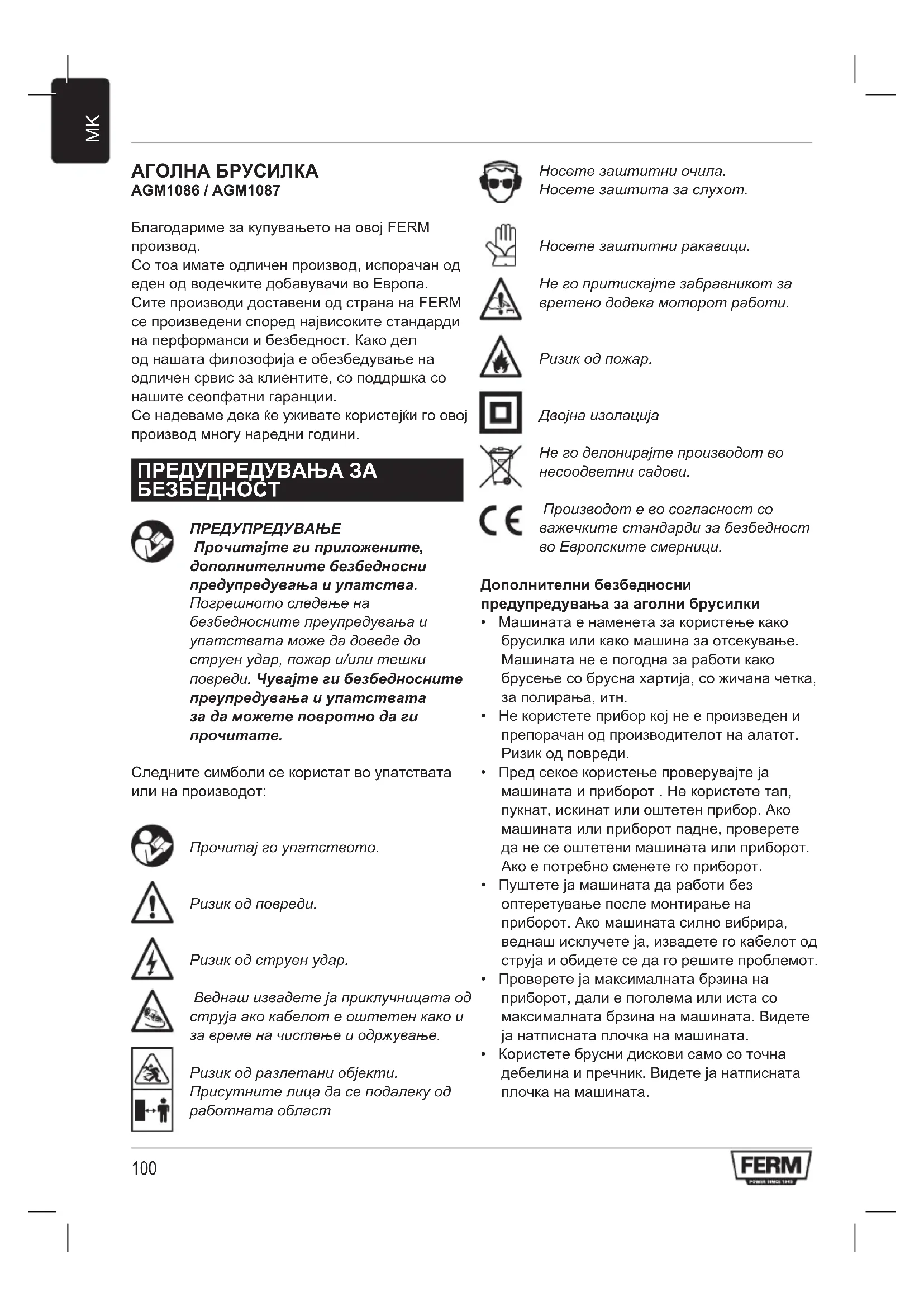 АГОЛНА БРУСИЛКА AGM1086 / AGM1087 Благодариме за купувањето на овој FERM