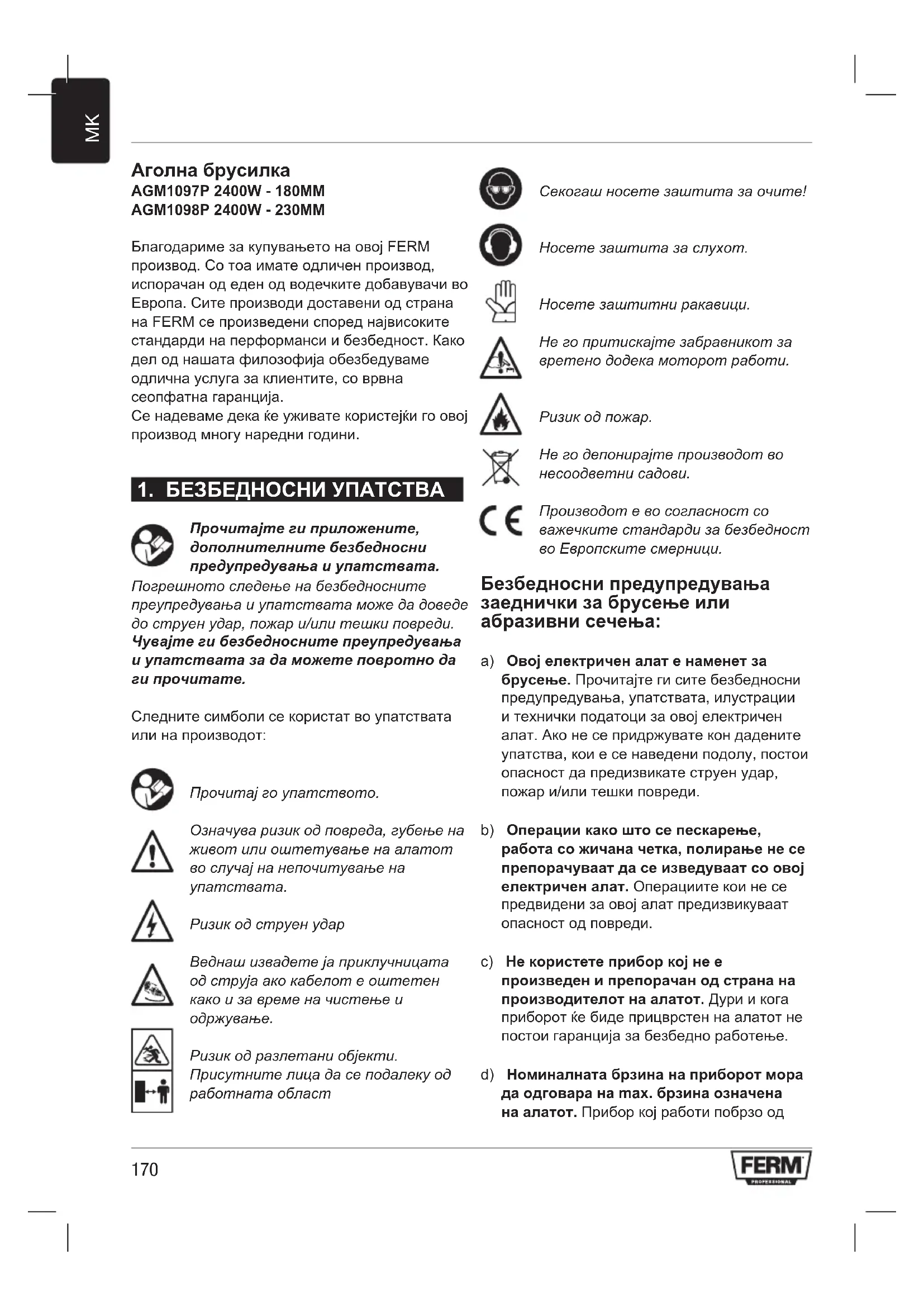 AGM1098P - Електрична аголна брусилка Ferm - Бесплатен кориснички прирачник