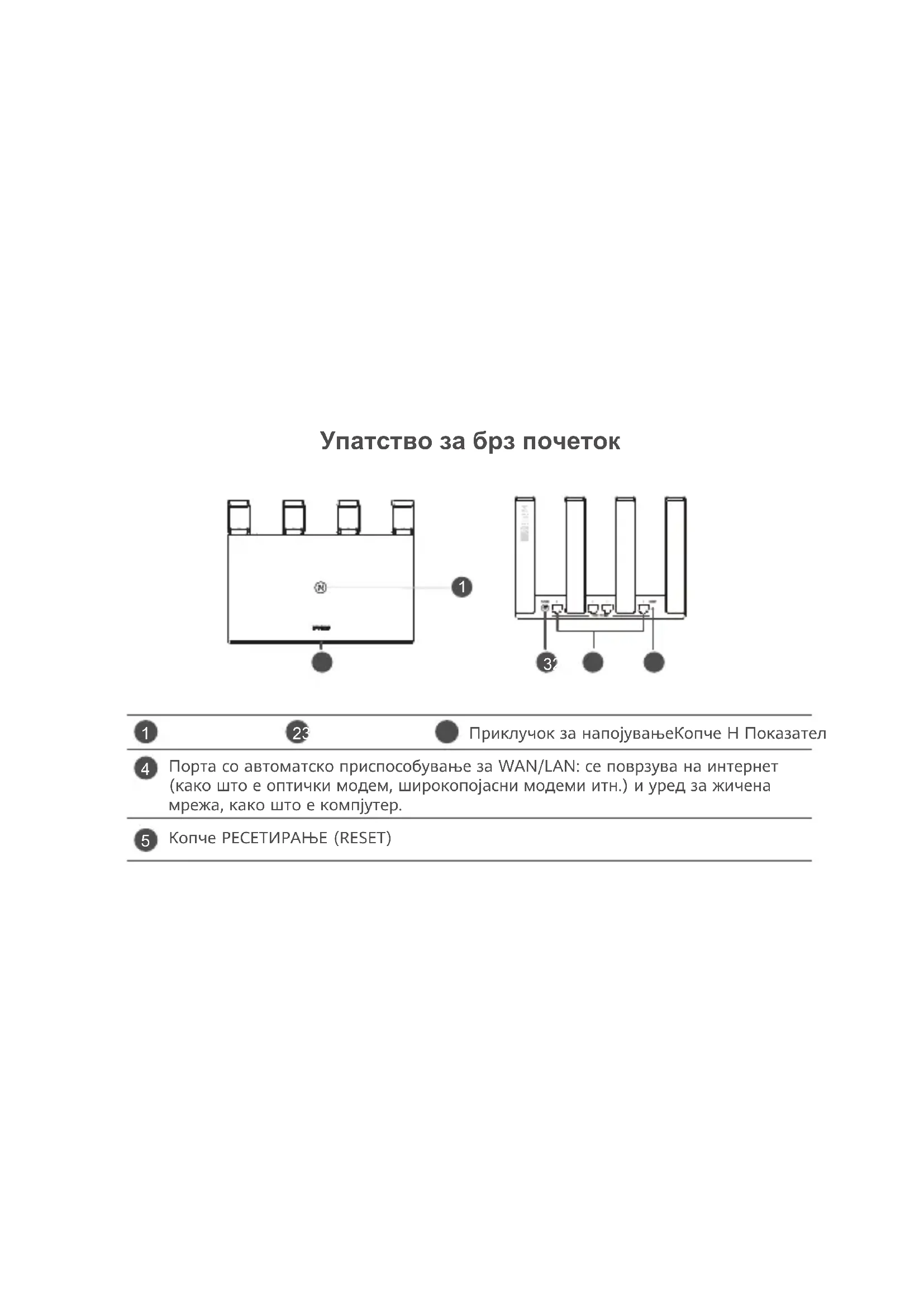 Упатство за брз почеток Порта со автоматско приспособување за WAN/LAN: се поврзува на интернет (како што е оптички модем, широкопојасни модеми итн.) и уред за жичена мрежа, како што е компјутер.