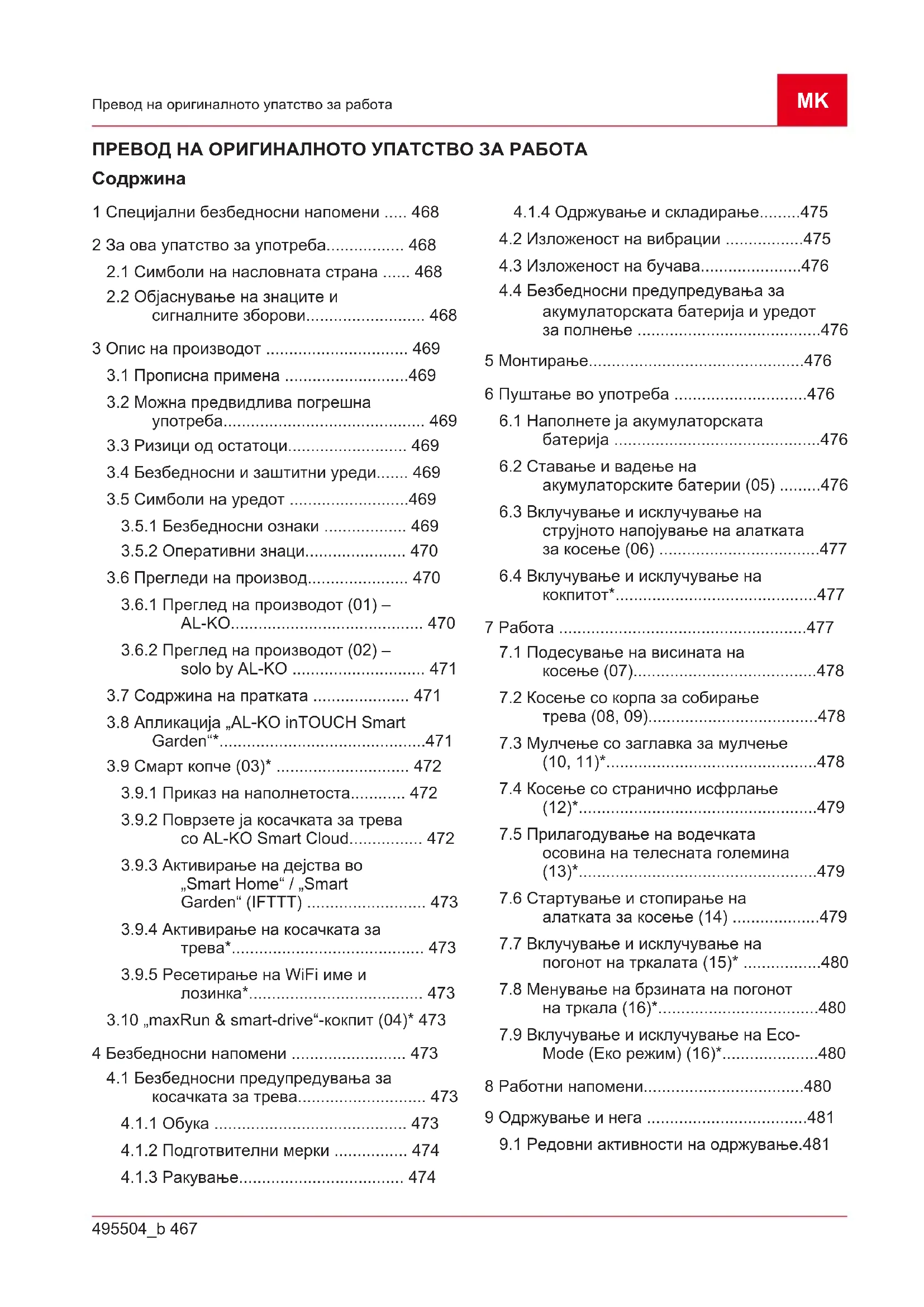 со AL-KO Smart Cloud................ 472