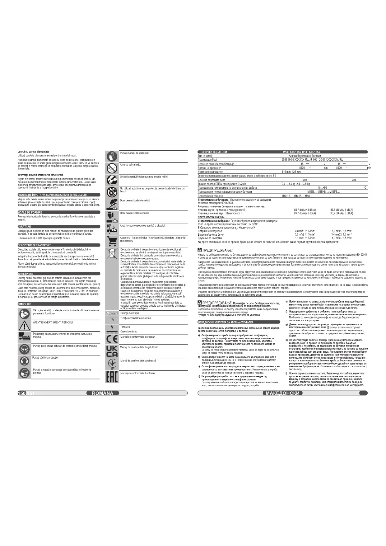 M18 FSAG115X - мелница MILWAUKEE - Бесплатен кориснички прирачник