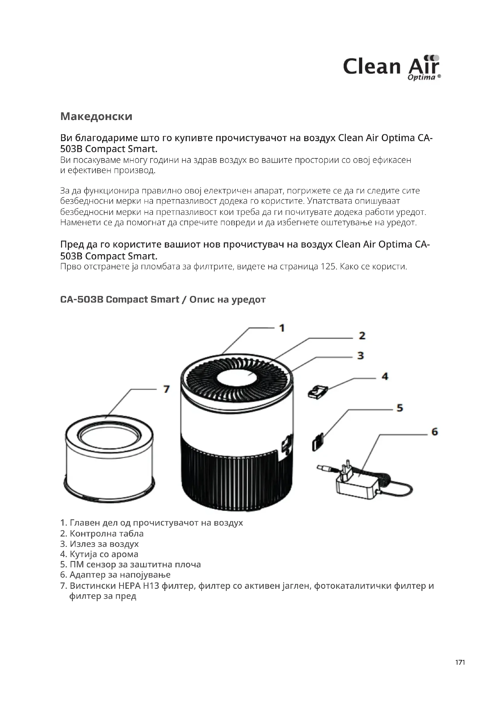 CA503B Compact Smart - Пречистувач на воздух Clean Air Optima - Бесплатен кориснички прирачник