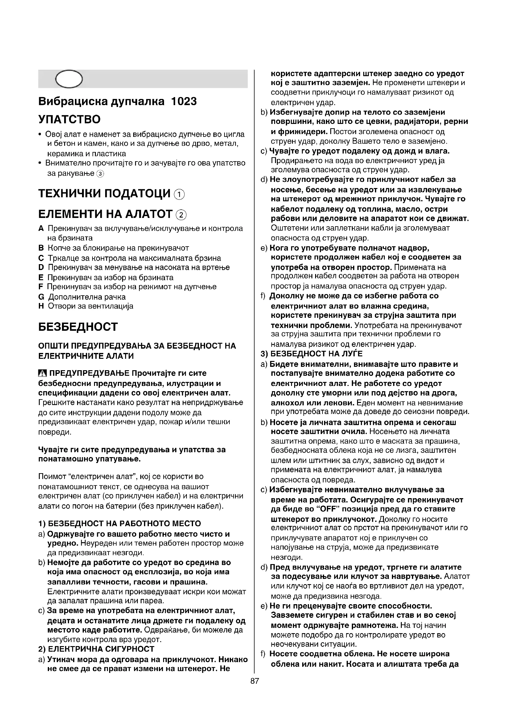 a) Електричниот алат сервисирајте го кај квалификувано лице кое користи само идентични резервни делови. Со ова се обезбедува безбедно одржување на електричниот алат. БЕЗБЕДНОСНИ УПАТСТВА ЗА ВИБРИРАЧКИ